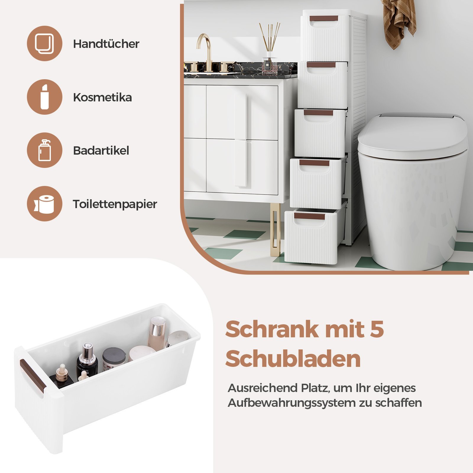 Šis siauras, itin funkcionalus sandėliukas su ratukais yra puikus sprendimas tvarkai palaikyti bet kurioje namų erdvėje. Jo dėka galėsite efektyviai išnaudoti siaurus tarpus, pavyzdžiui, tarp buitinės technikos ar baldų.