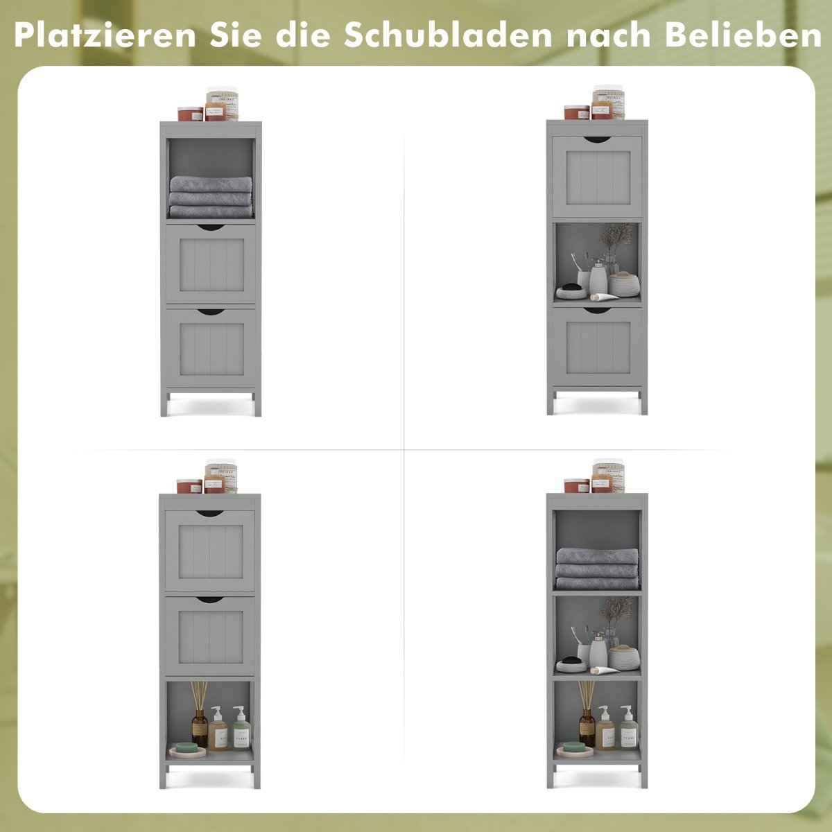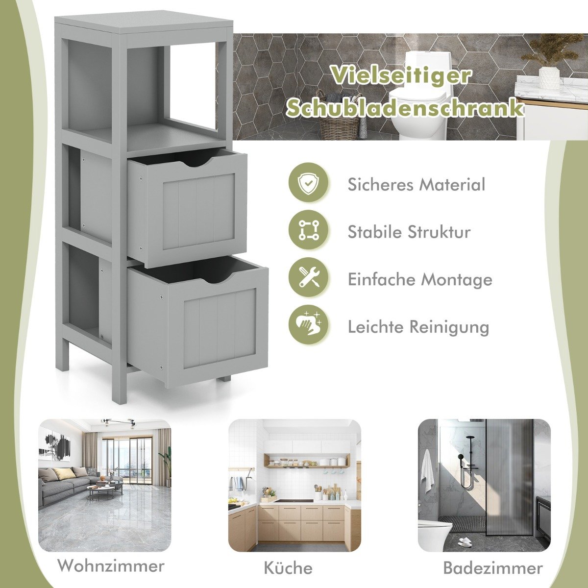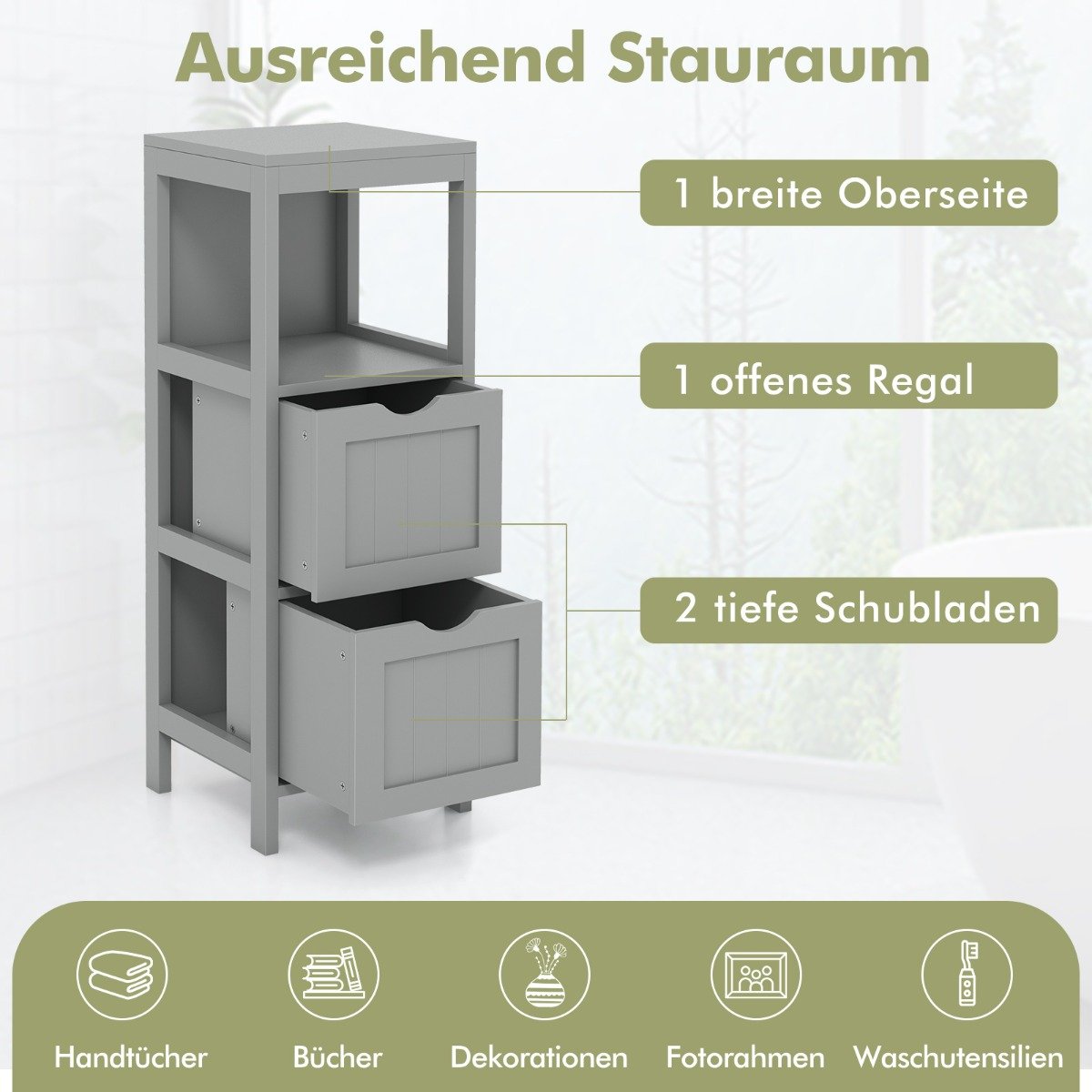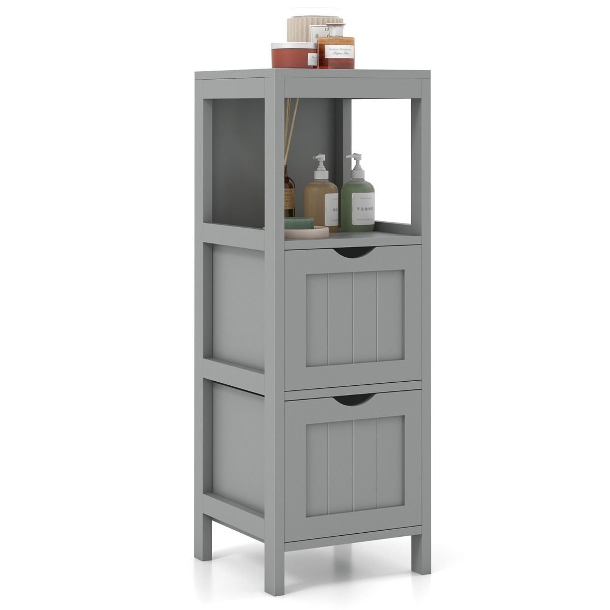Siaura vonios spintelė su dviem stalčiais ir atviru skyriumi (Pilka)