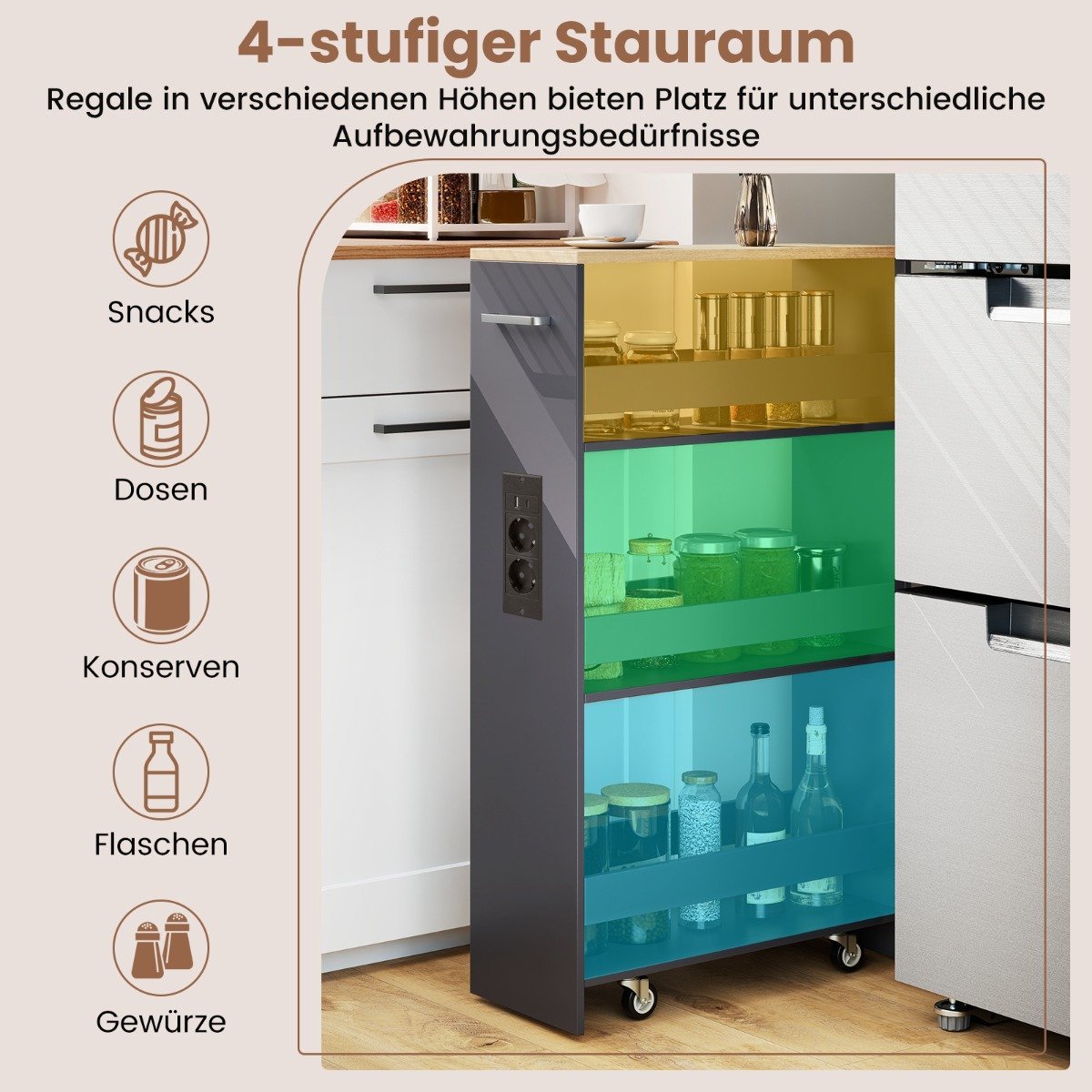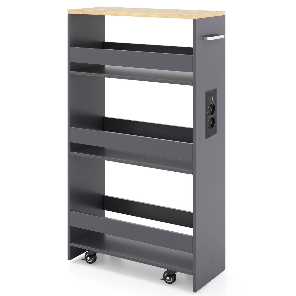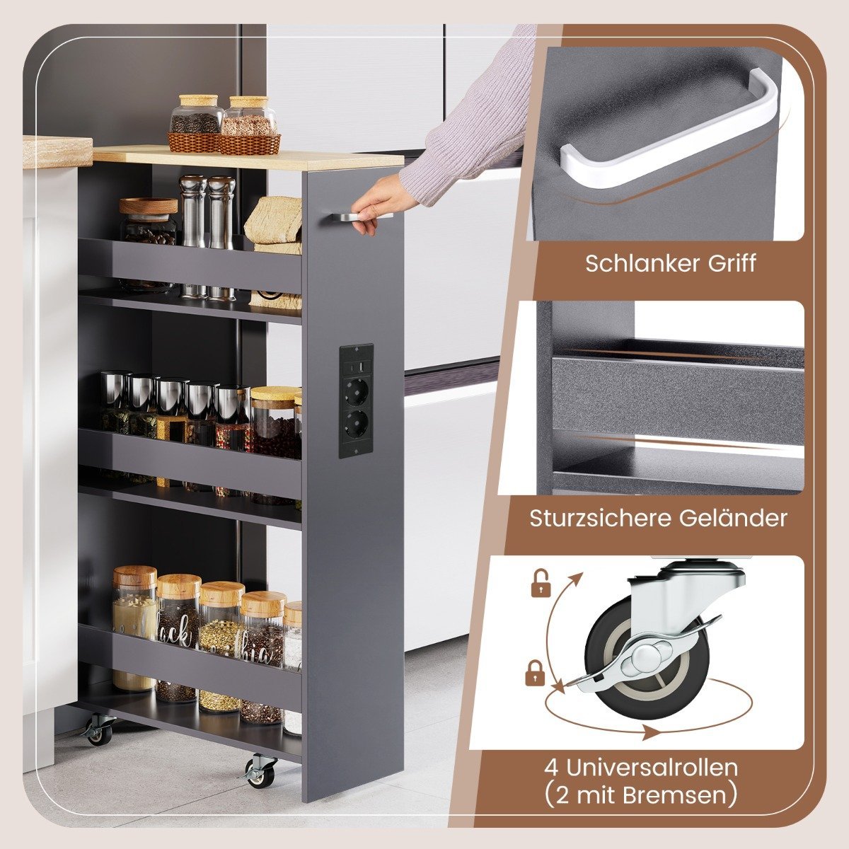 Su šiuo itin siauru, mobiliuoju sandėliavimo vežimėliu iš naujo atraskite savo namų erdvę. Puikiai tinkantis ankštoms erdvėms, jo keturių lygių konstrukcija užtikrina gausią daiktų laikymo vietą. O integruota įkrovimo stotelė sujungia funkcionalumą su patogumu, leisdama įkrauti įrenginius be nereikalingos netvarkos. Dėl universalių ratukų vežimėlį lengvai perkelsite iš vienos vietos į kitą, o tvirta konstrukcija garantuoja ilgalaikį patikimumą.