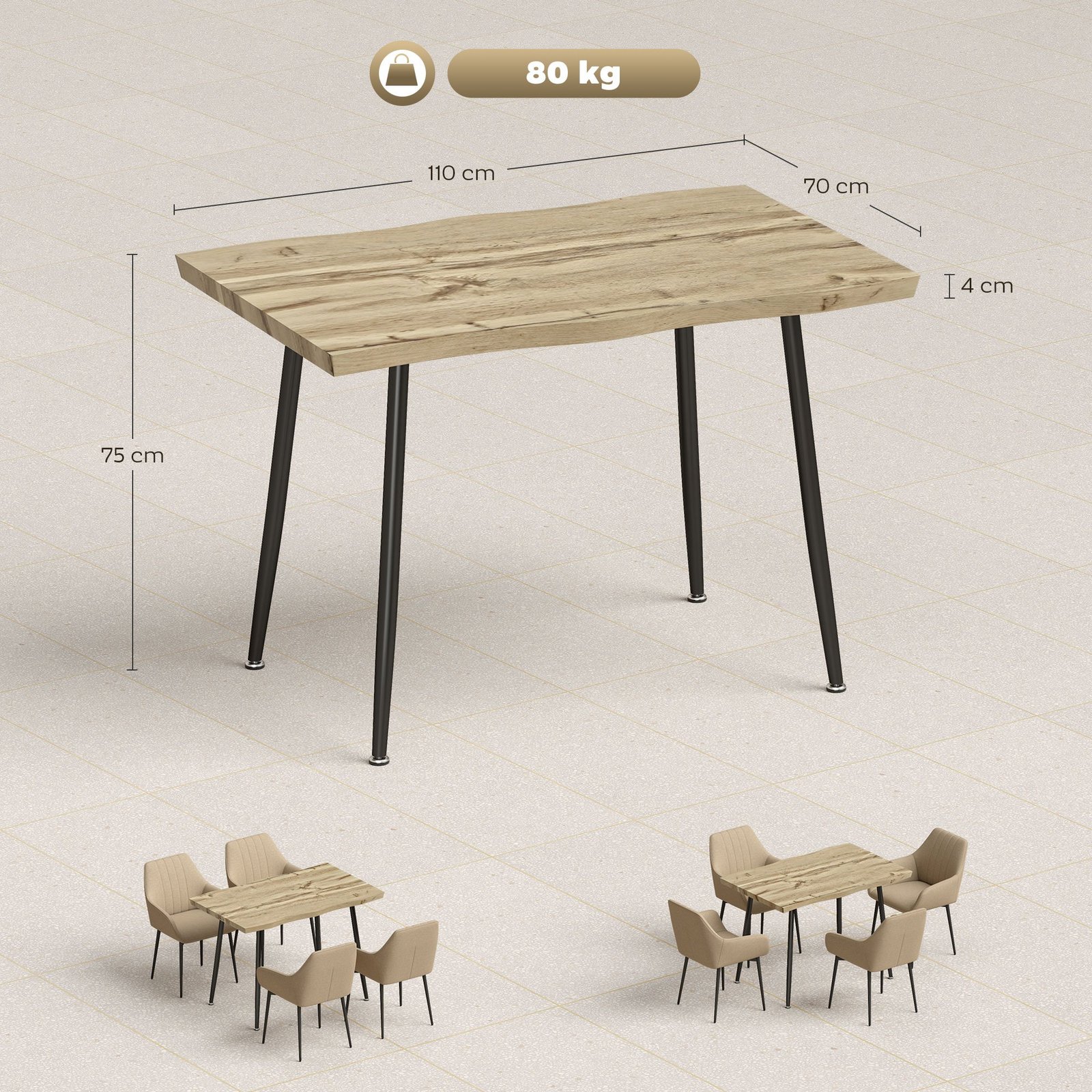 ✔ Ąžuolo imitacijos ir juodos stalo kojos suteikia stilingą skandinavišką žavesį