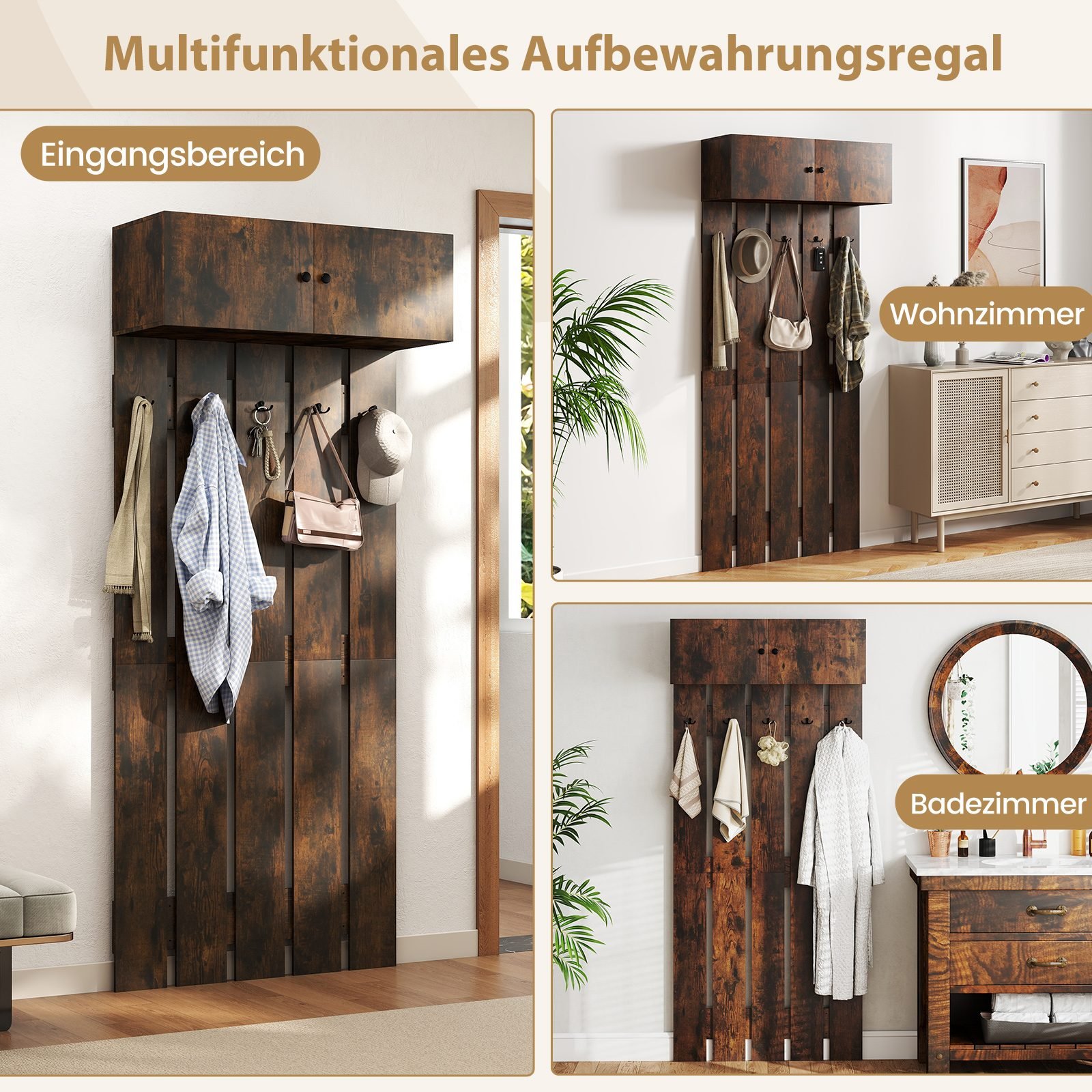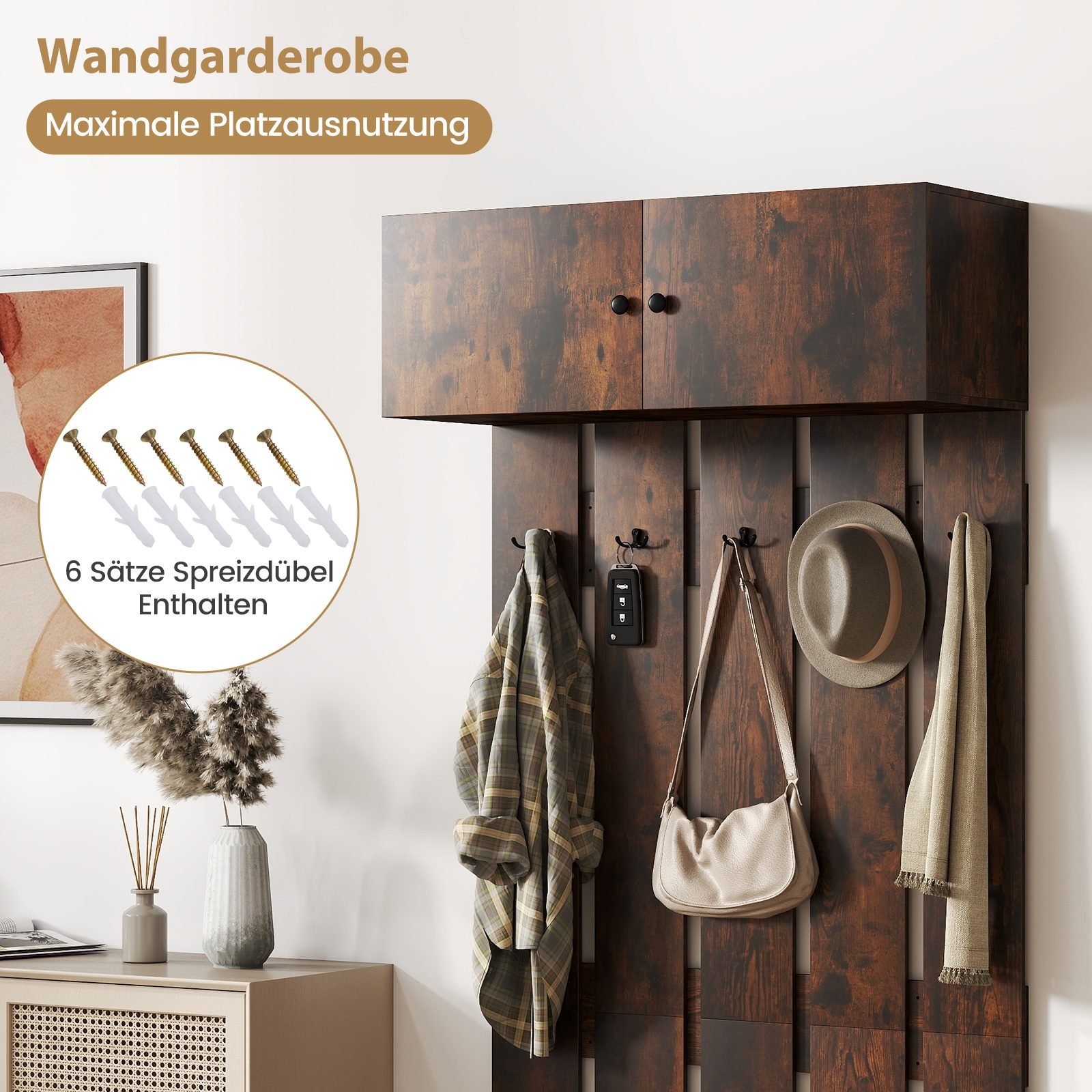 Sieninė drabužių kabykla su 5 dvigubais kabliukais ir 2 durų spintele (Rudos)