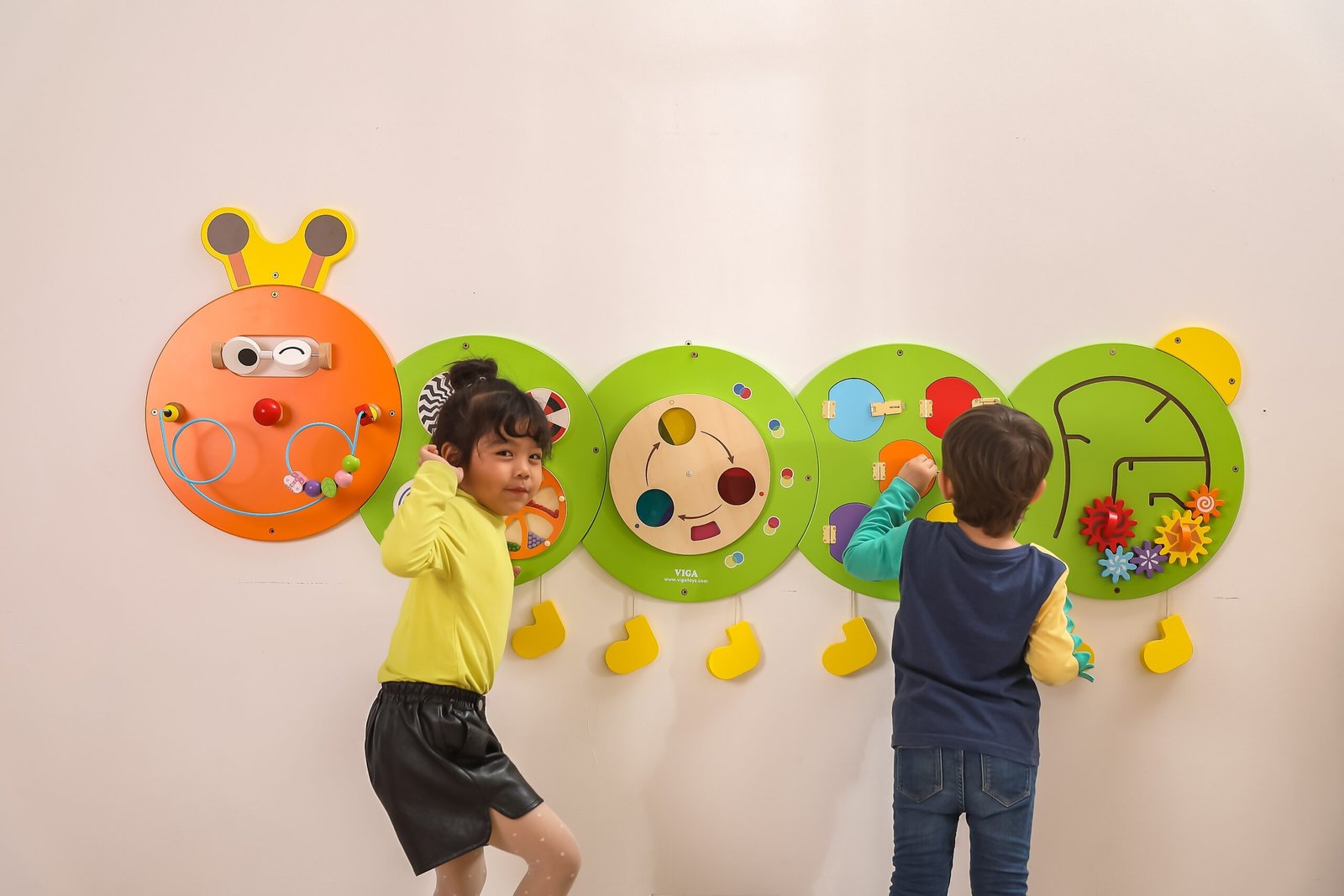 Daugiafunkcė sieninė lenta su linksmu vikšro atvaizdu. Rinkinį sudaro penkios skirtingų funkcijų lentos, kurias lengva sumontuoti, išmontuoti ir transportuoti. Šia vikšro formos lenta vienu metu gali žaisti keli vaikai, ne tik smagiai leisdami laiką, bet ir daug ko išmokdami. Lenta padeda mokytis spalvų, pažinti garsus ir formas, lavina rankų ir akių koordinaciją bei socialinius įgūdžius. Idealiai tinka mokykloms, darželiams, ugdymo centrams ir viešosioms erdvėms. Skirta vaikams nuo 18 mėnesių.