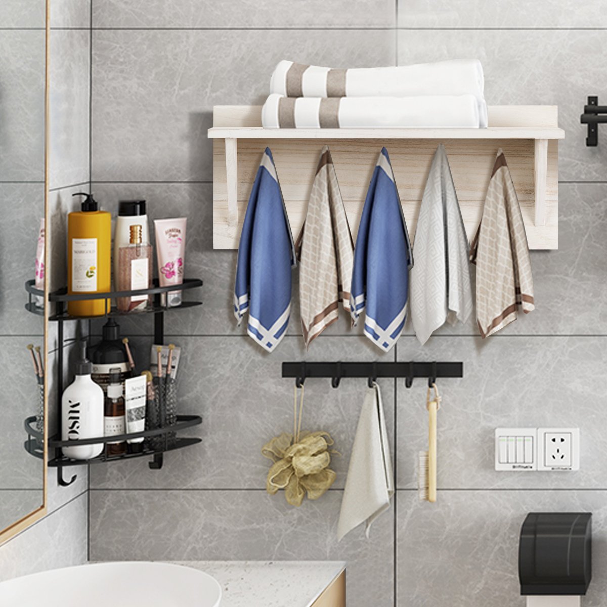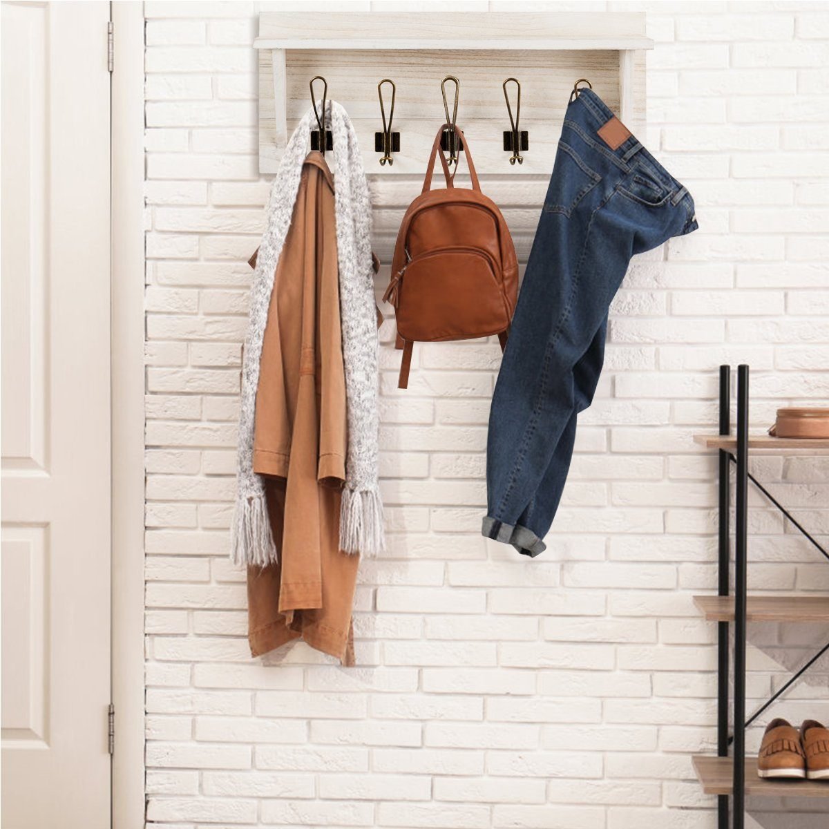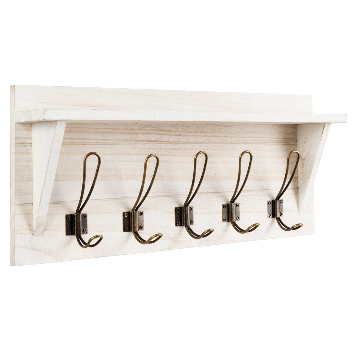 Sieninė spintelė su penkiais kabliukais ir lentyna (Balta)