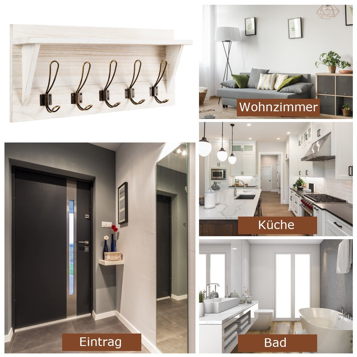 - 5 tvirti metaliniai dvigubi kabliukai drabužiams, raktams ar kitiems daiktams pakabinti.