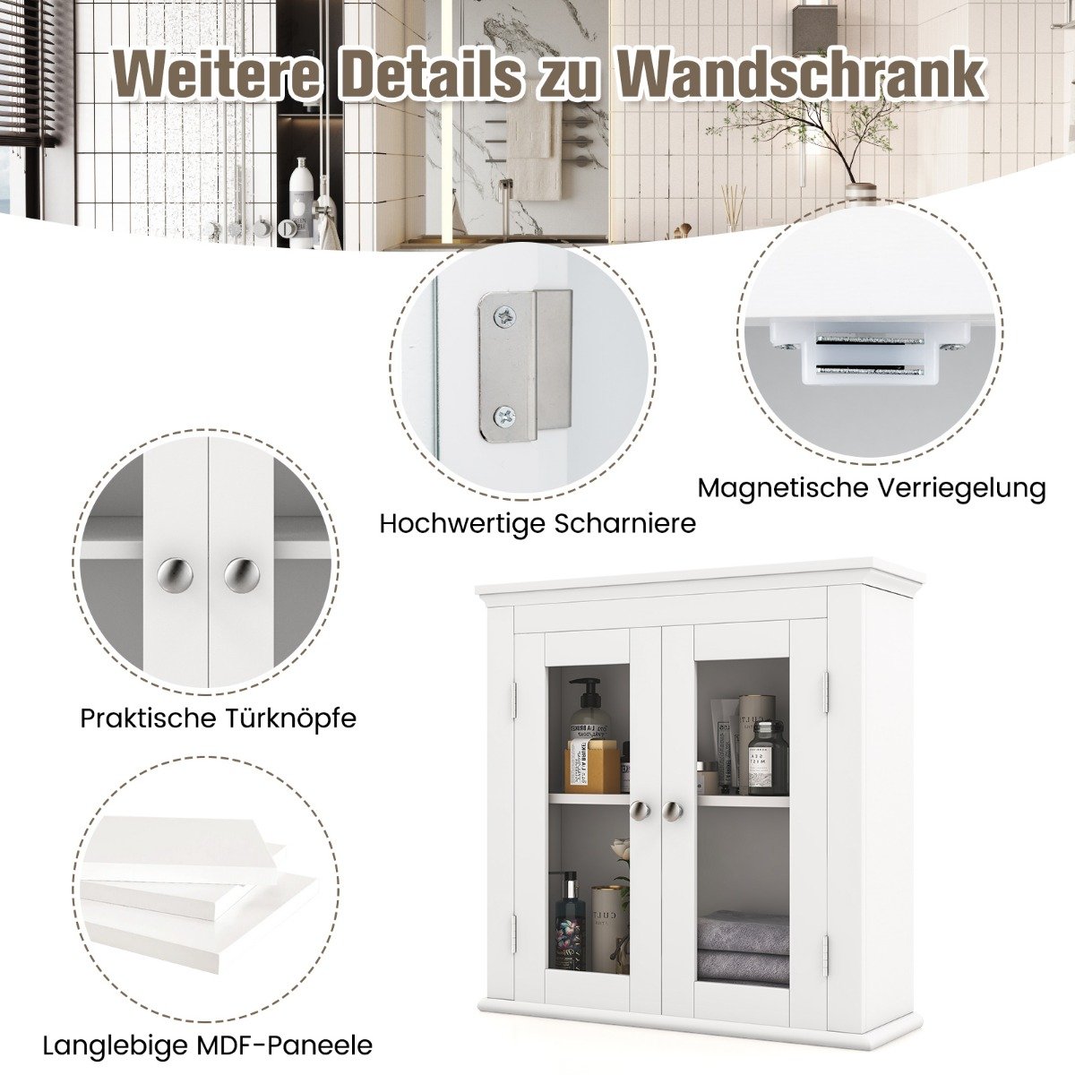 Ši sieninė spintelė – puikus ir vietą taupantis jūsų namų interjero akcentas. Ji gali būti naudojama kaip pagrindinė spintelė, vonios ar vaistų spintelė, atsižvelgiant į jūsų poreikius. Dėl 2 lygių saugojimo vietos spintelė sutalpins įvairius daiktus.