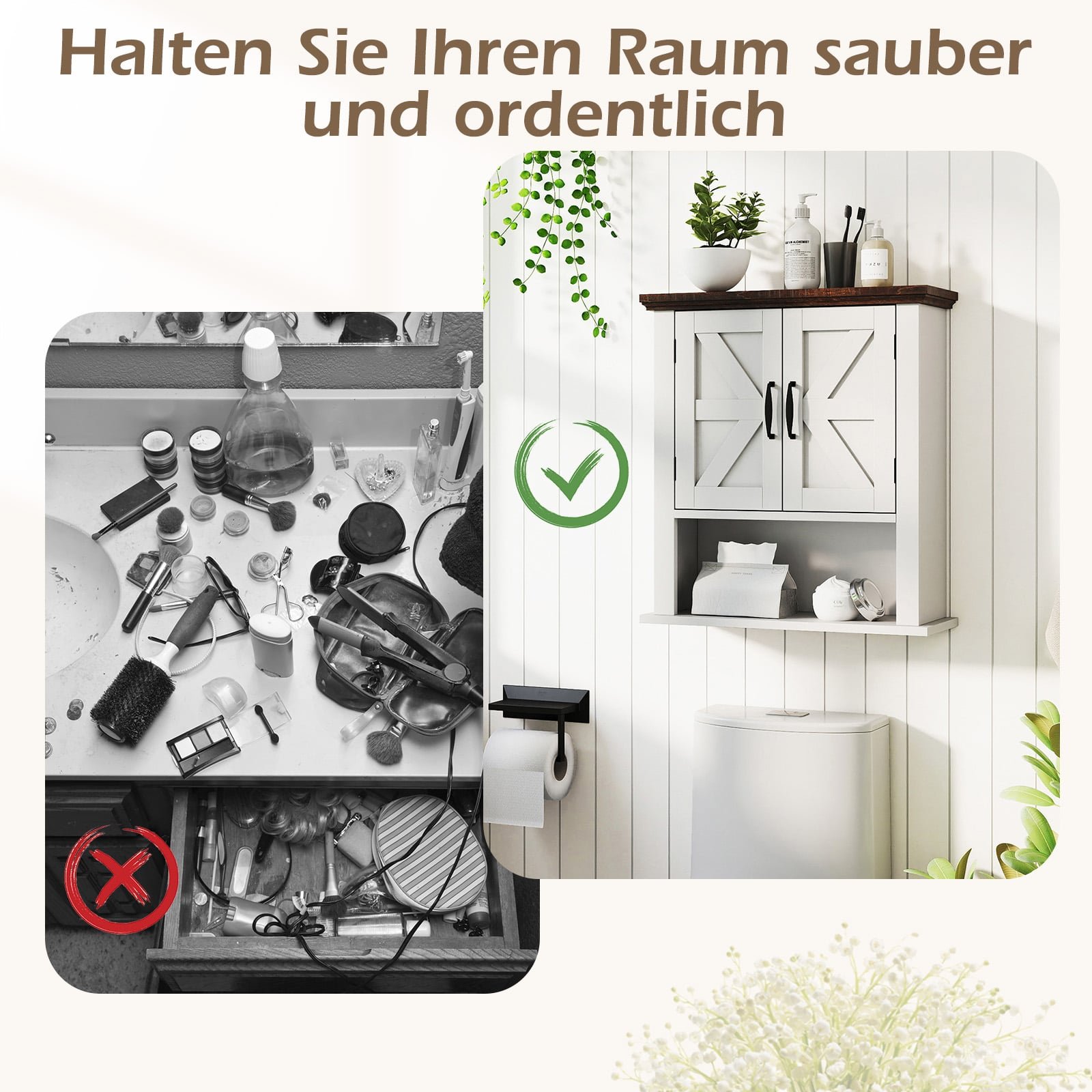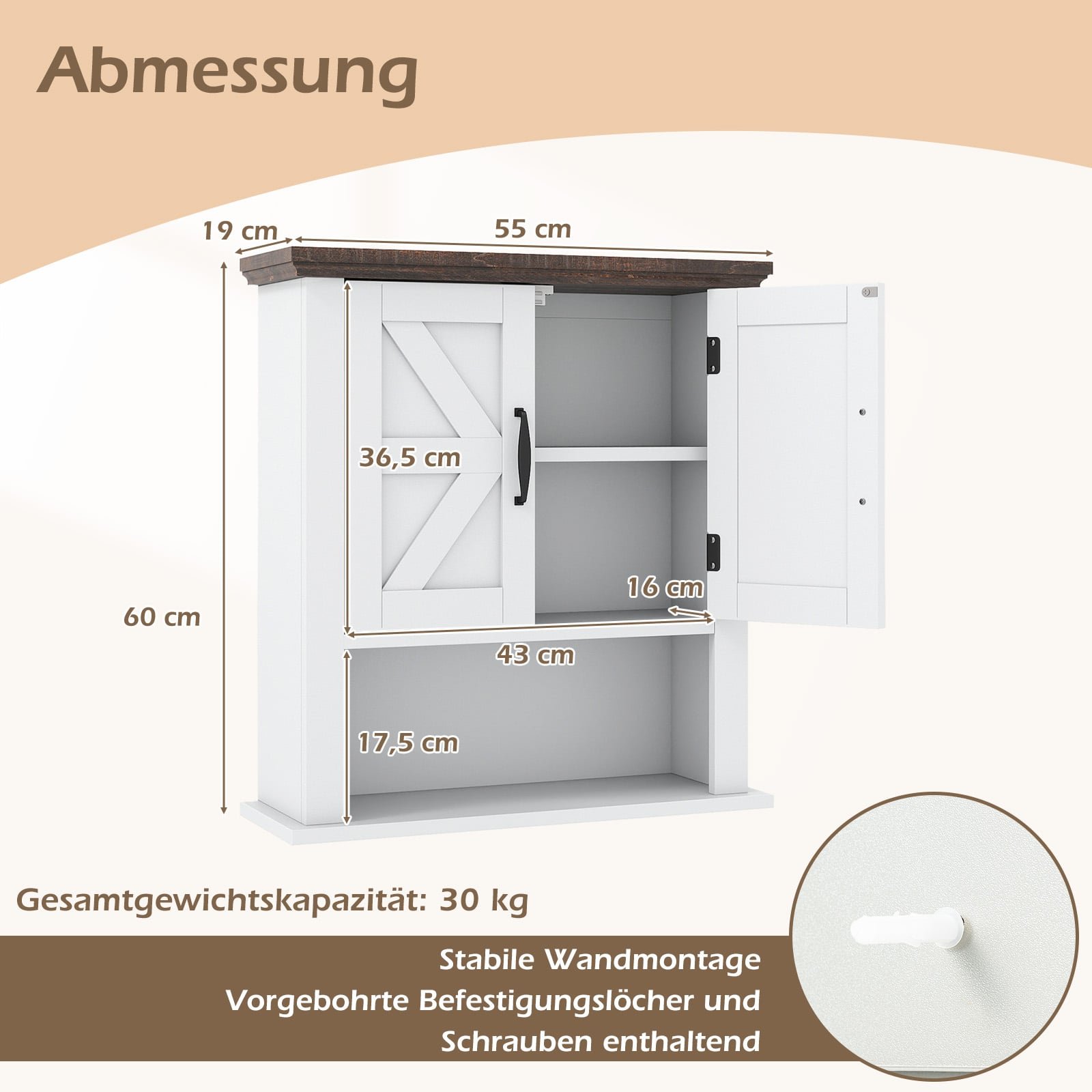 Ši sieninė spintelė sukurta padėti jums palaikyti tvarką ir maksimaliai išnaudoti erdvę. Su reguliuojama lentyna ir atviru skyriumi, ji suteikia daug vietos kasdieniams daiktams patogiai laikyti. Patogios rankenos, saugus magnetinis fiksatorius ir tvirti metaliniai vyriai užtikrina patikimą spintelės naudojimą ir ilgaamžiškumą.