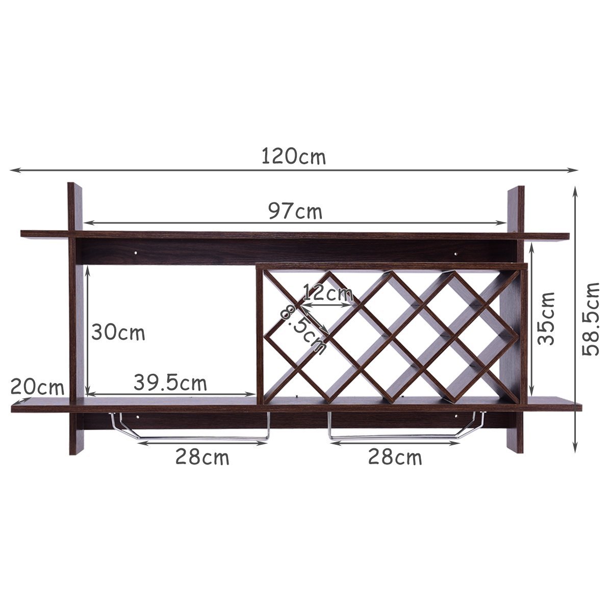 Sieninė vyno lentyna su integruotu taurių laikikliu (Ruda)