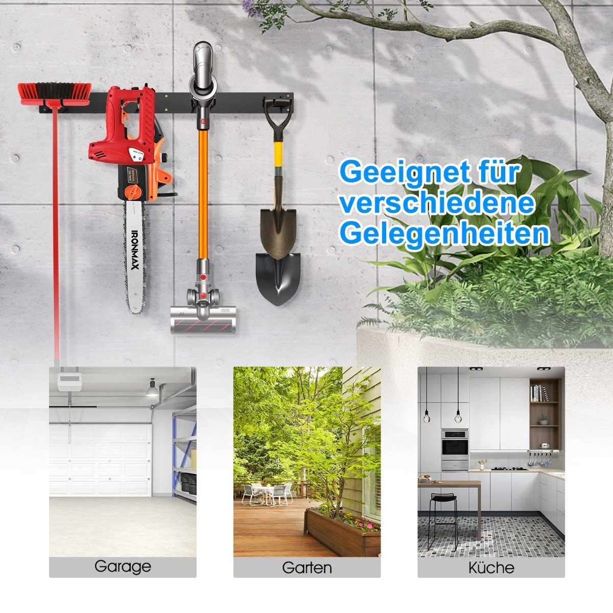 Ar Jūsų garaže vyrauja netvarka su įrankiais? Su mūsų pakabinamu sieniniu laikikliu šios problemos neliks! Šis tvirtas įrankių laikiklis yra milteliniu būdu dengtas, atsparus smūgiams ir ilgaamžis. Kabliai leidžia tvarkingai laikyti įvairius daiktus ir gali būti naudojami skirtingose vietose, pavyzdžiui, garaže ar sode. Sieninis dizainas žymiai taupo vietą.
