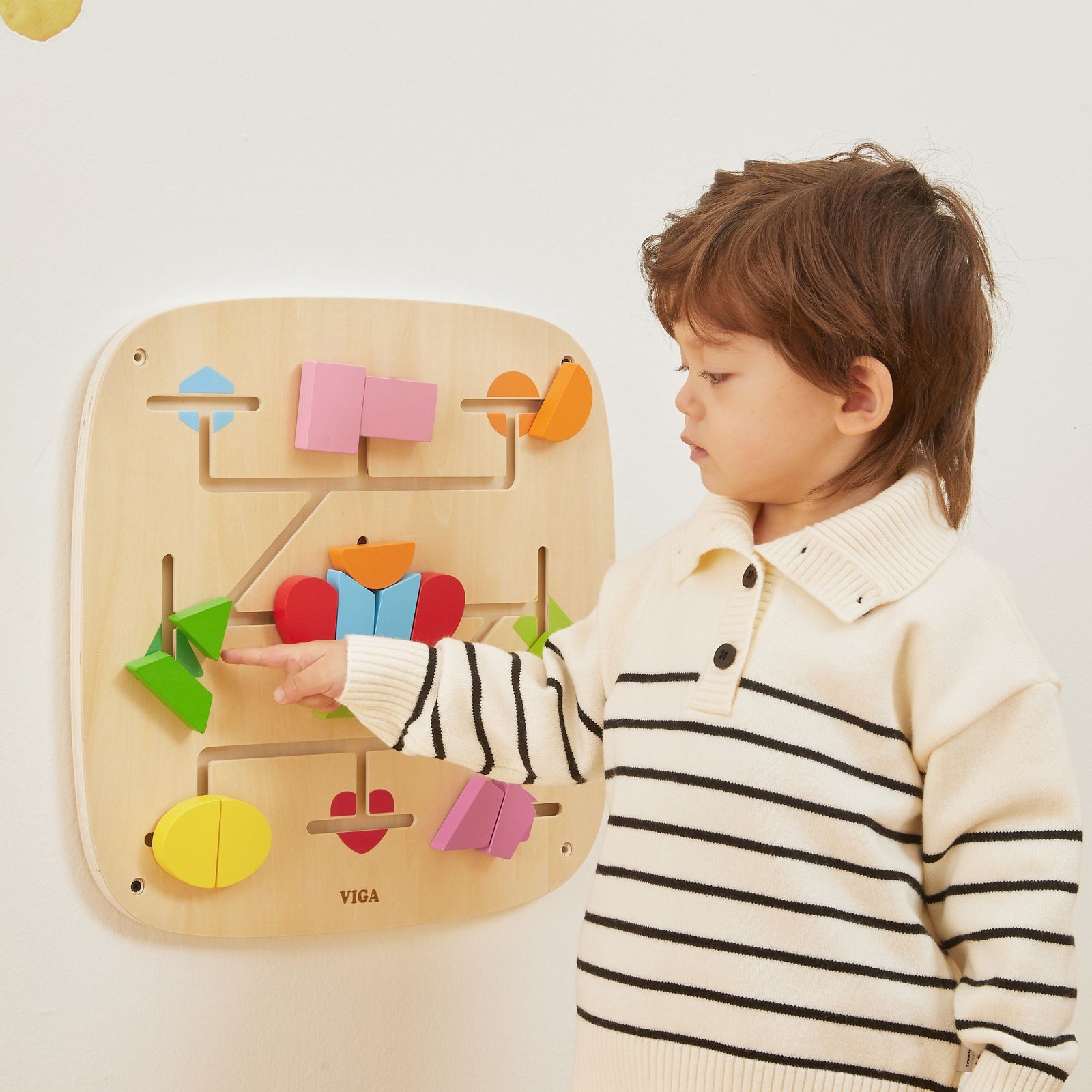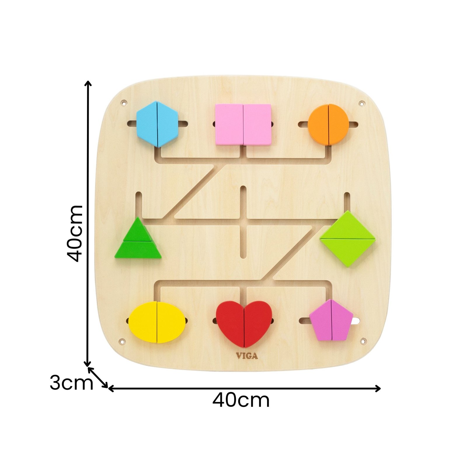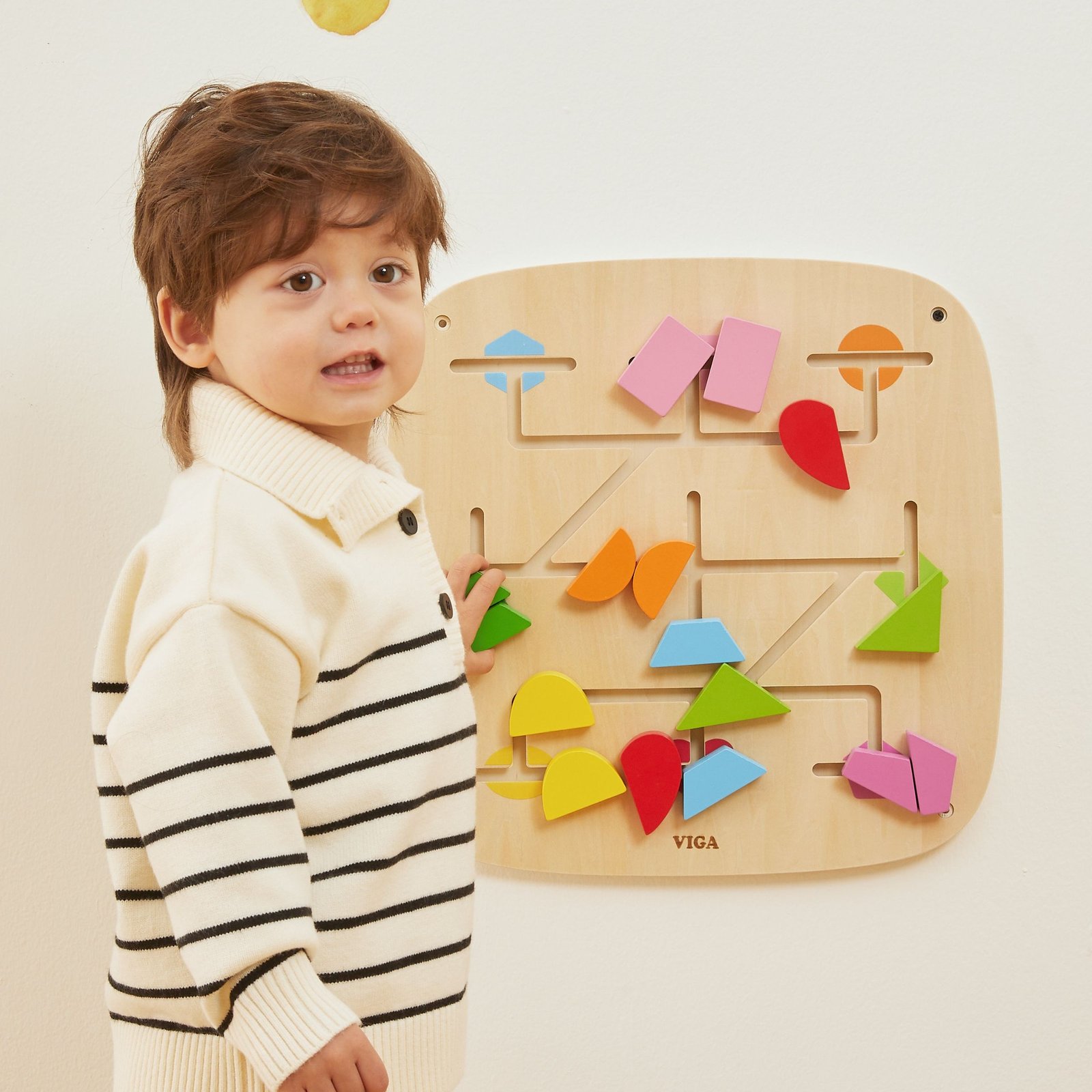 Šis spalvingas sieninis skydelis sujungia sumanų žaidimą ir aktyvų mokymąsi. Stumdydamas kaladėles takeliais, vaikas įtraukiančiu ir natūraliu būdu atranda formų bei spalvų pasaulį. Žaidimas ugdo smalsumą, leidžia eksperimentuoti ir skatina kurti savitus raštus. Tvirta medinė konstrukcija užtikrina, kad skydelis yra ilgaamžis ir puikiai tinka namų, darželių ar žaidimų kambarių aplinkai. Šis interaktyvus skydelis moko per judesį, lytėjimą ir stebėjimą – būtent taip, kaip mėgsta vaikai.