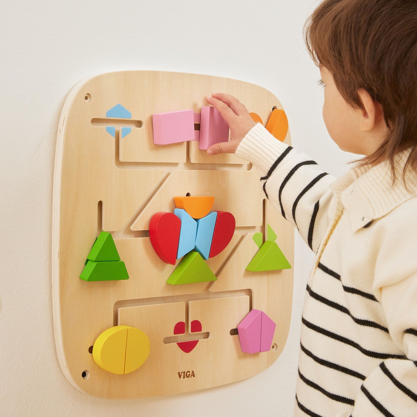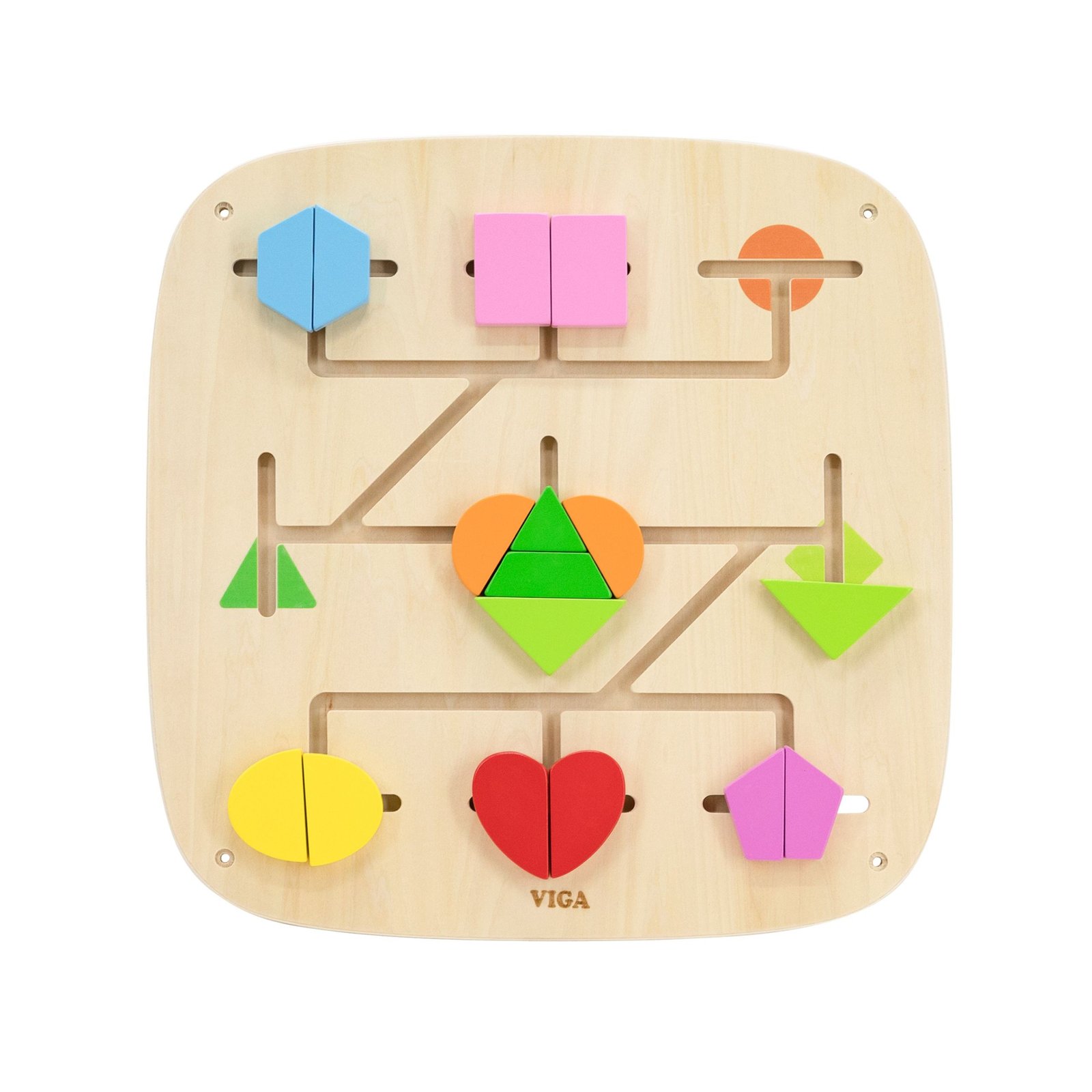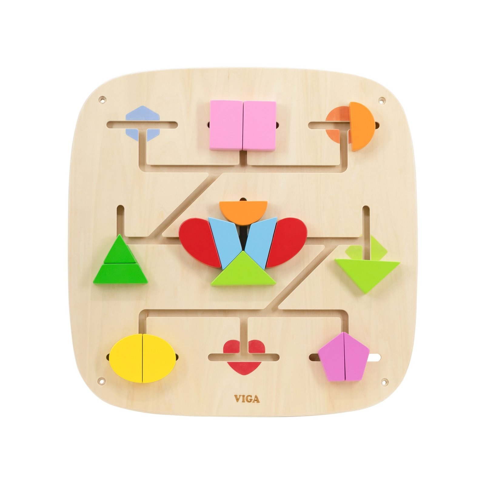Šis spalvingas sieninis skydelis sujungia sumanų žaidimą ir aktyvų mokymąsi. Stumdydamas kaladėles takeliais, vaikas įtraukiančiu ir natūraliu būdu atranda formų bei spalvų pasaulį. Žaidimas ugdo smalsumą, leidžia eksperimentuoti ir skatina kurti savitus raštus. Tvirta medinė konstrukcija užtikrina, kad skydelis yra ilgaamžis ir puikiai tinka namų, darželių ar žaidimų kambarių aplinkai. Šis interaktyvus skydelis moko per judesį, lytėjimą ir stebėjimą – būtent taip, kaip mėgsta vaikai.