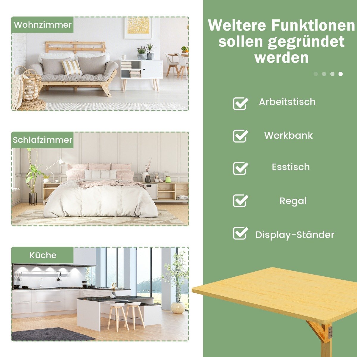 Šis sulankstomas sieninis stalviršis – puikus sprendimas jūsų namams! Dėl sieninio tvirtinimo ir sulankstomo dizaino šis stalas suteikia idealų erdvę taupantį sprendimą tiems, kurių namuose trūksta vietos. Didelis 80 cm x 60 cm stalviršis užtikrina pakankamai erdvės darbui ar maistui.