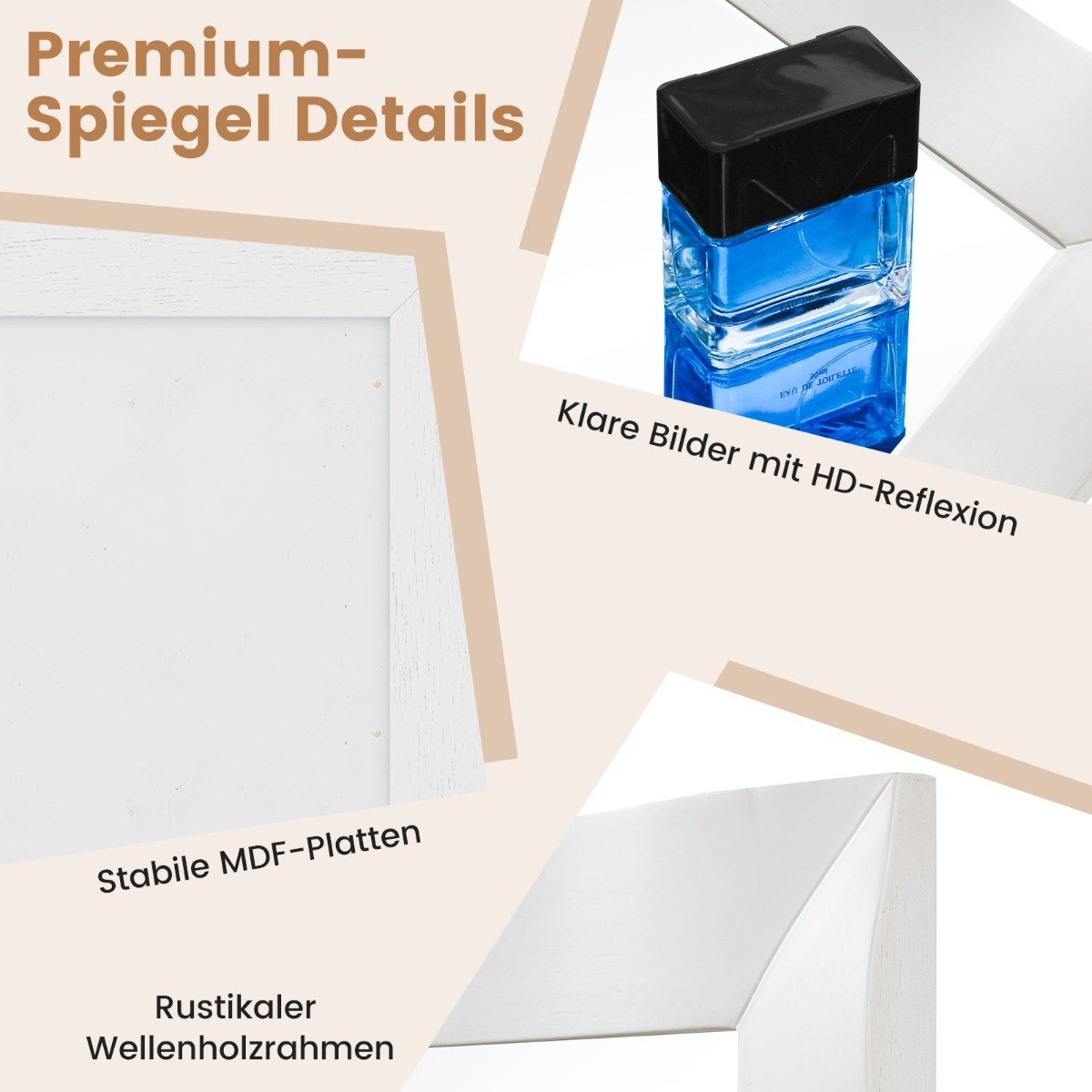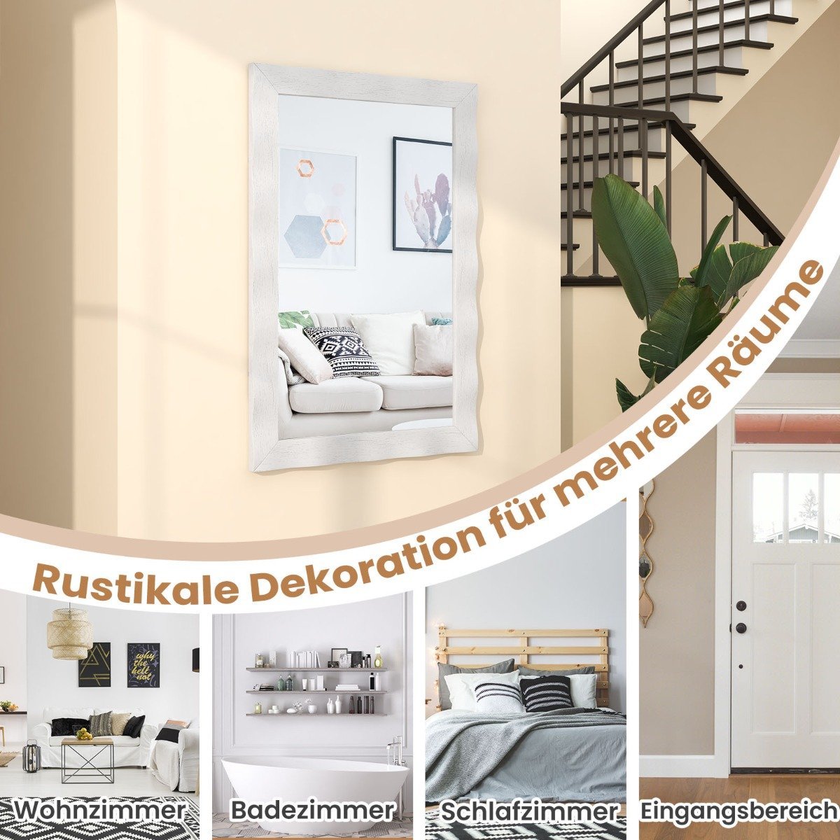 Papildykite savo namų interjerą šiuo stilingu, kaimiško stiliaus sieniniu veidrodžiu. Pagamintas iš natūralaus, raudonmedžio medienos rėmo, šis veidrodis ne tik ilgaamžis ir elegantiškas, bet ir puikiai tiks bet kuriai namų erdvei, įskaitant vonios kambarį. Dėl galimybės veidrodį kabinti horizontaliai ar vertikaliai, jis suteikia maksimalų lankstumą.