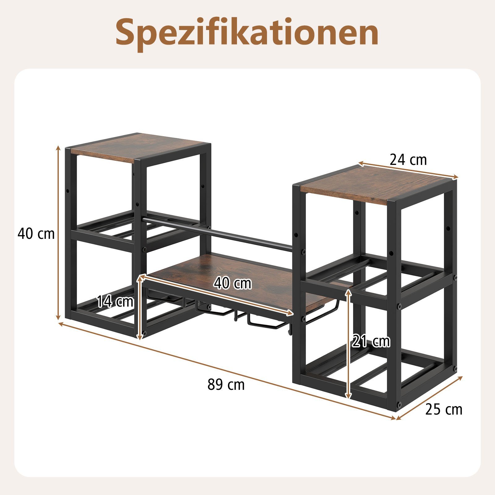 - Universalus dizainas: Šis pramoninio ir kaimiško stiliaus stovas puikiai tinka kaip vyno baras, ekspozicinė lentyna ar virtuvės daiktų laikymo sprendimas.