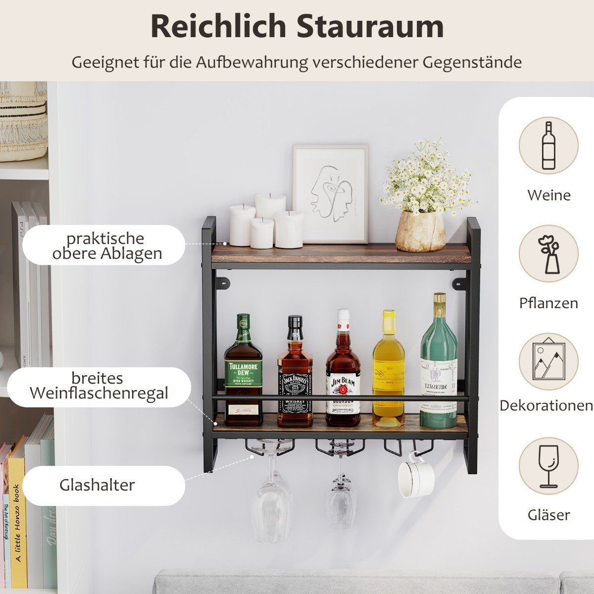 Sieninis vyno stovas su stiklinių laikikliu (Rustikaliai ruda)