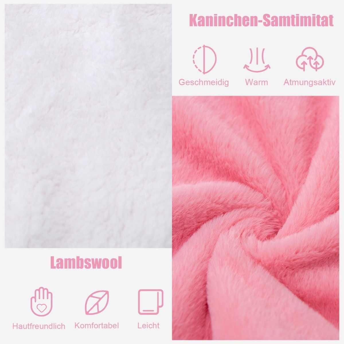 • Aukštos kokybės, dvipusė medžiaga: minkštas triušio aksomas ir maloni medvilnė.
