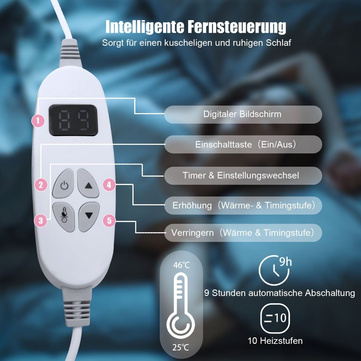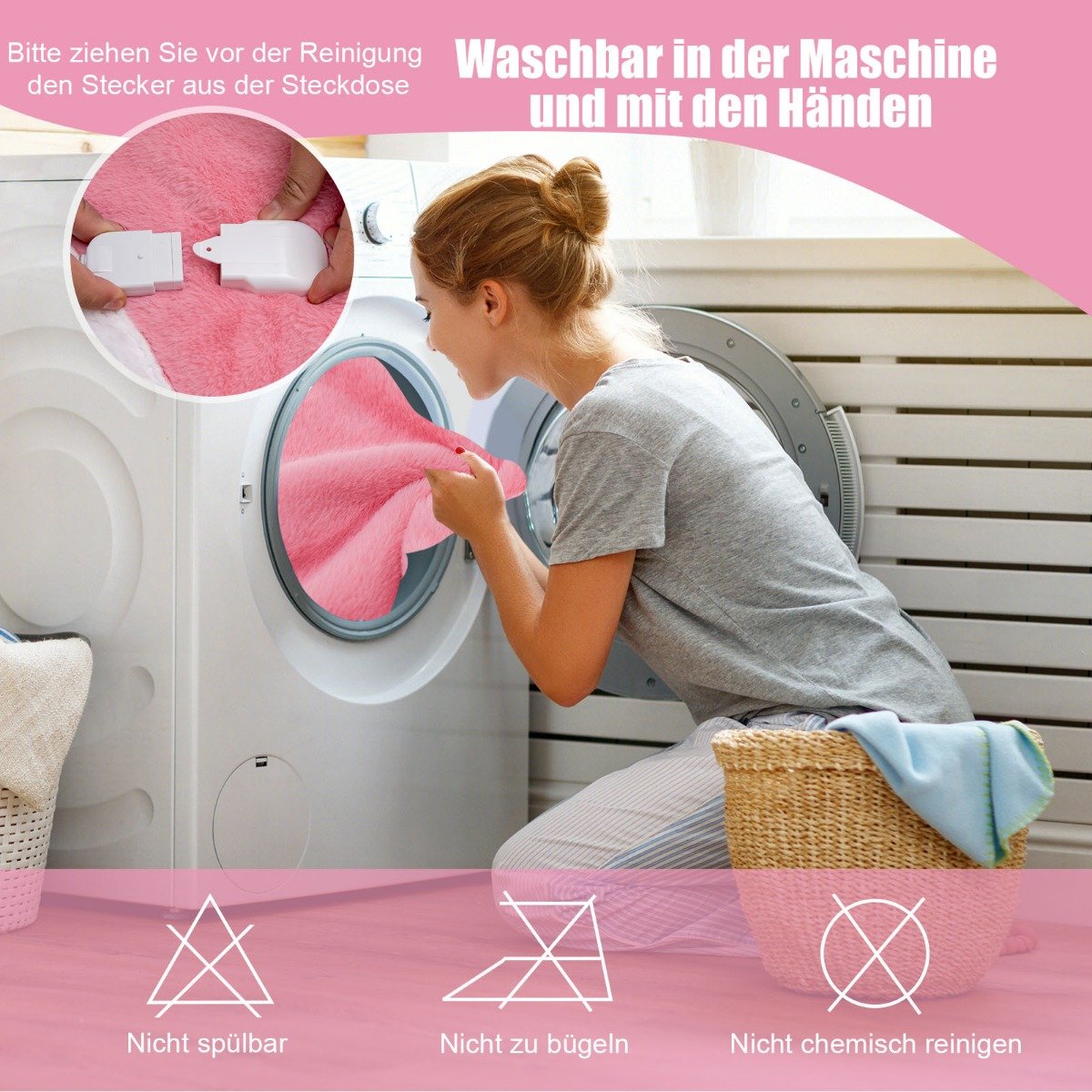 Šildoma antklodė su 9 šilumos lygiais ir laikmačiu (Rožinė)