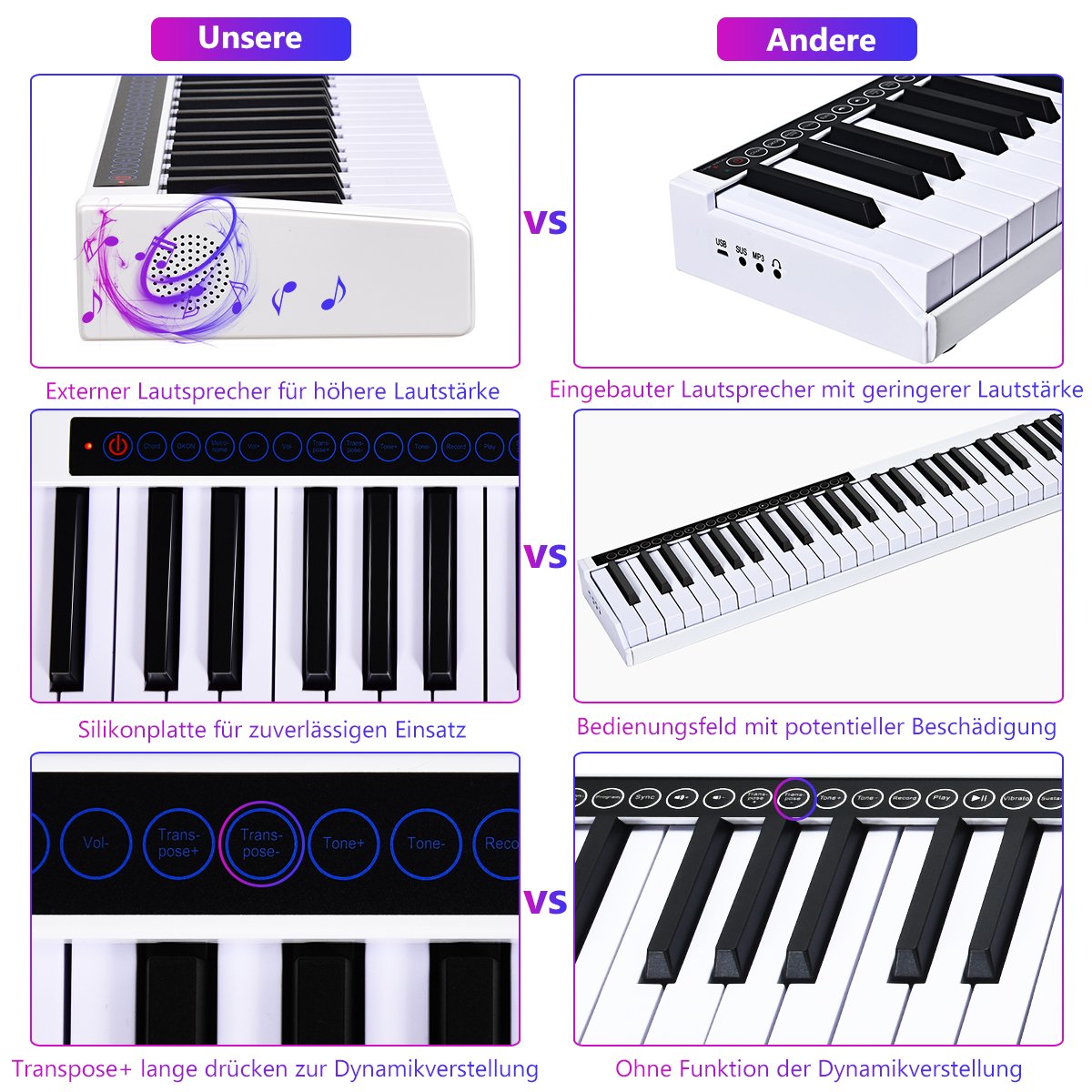 Atraskite muzikos pasaulį su šiuo skaitmeniniu pianinu, sukurtu tiek pradedantiesiems, tiek pažengusiems muzikantams. Tobulinkite savo įgūdžius naudodami įvairias funkcijas ir mėgaukitės puikiu garsu.