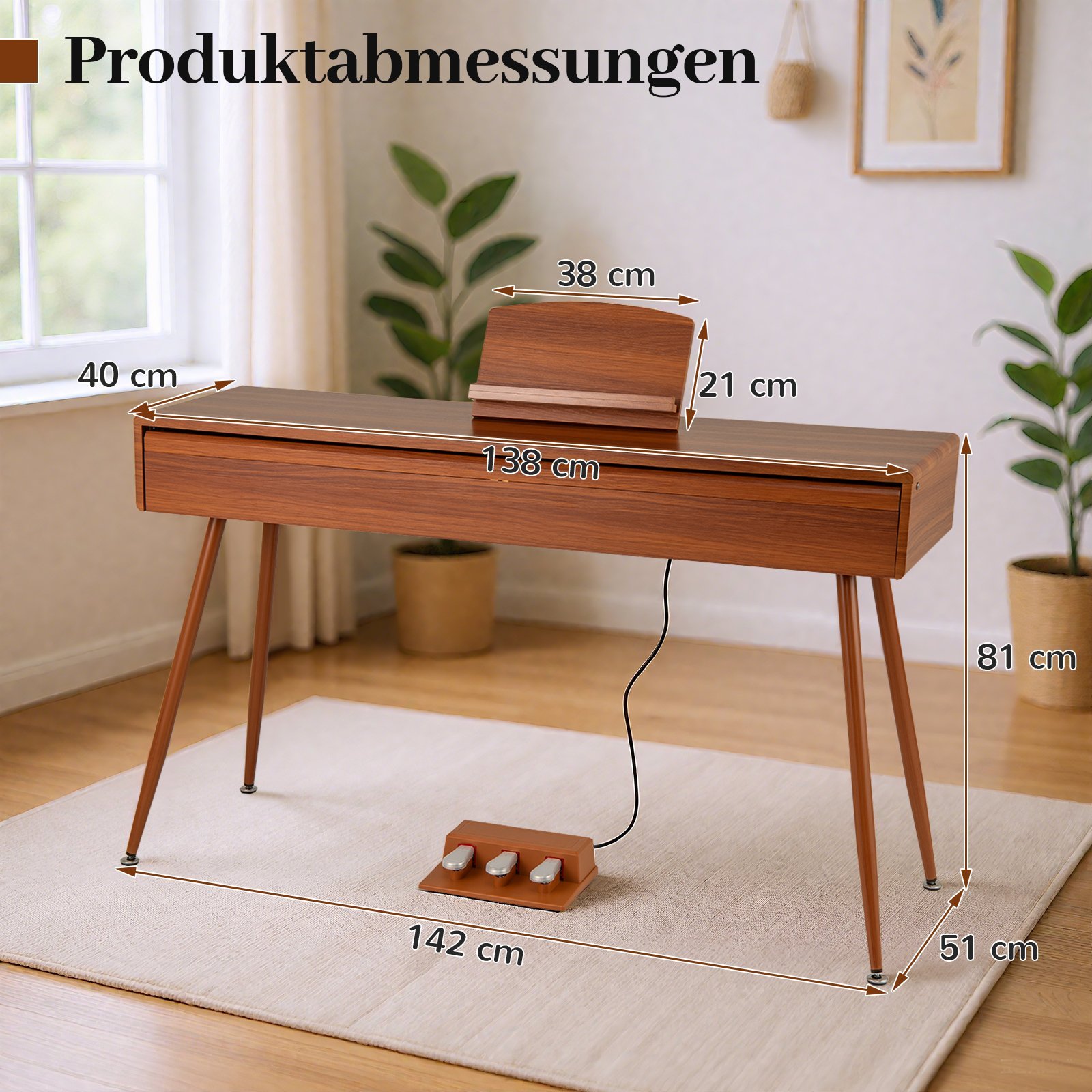 Skaitmeninis pianinas su 88 svertiniais klavišais ir ištraukiamu stalčiumi (Ruda)