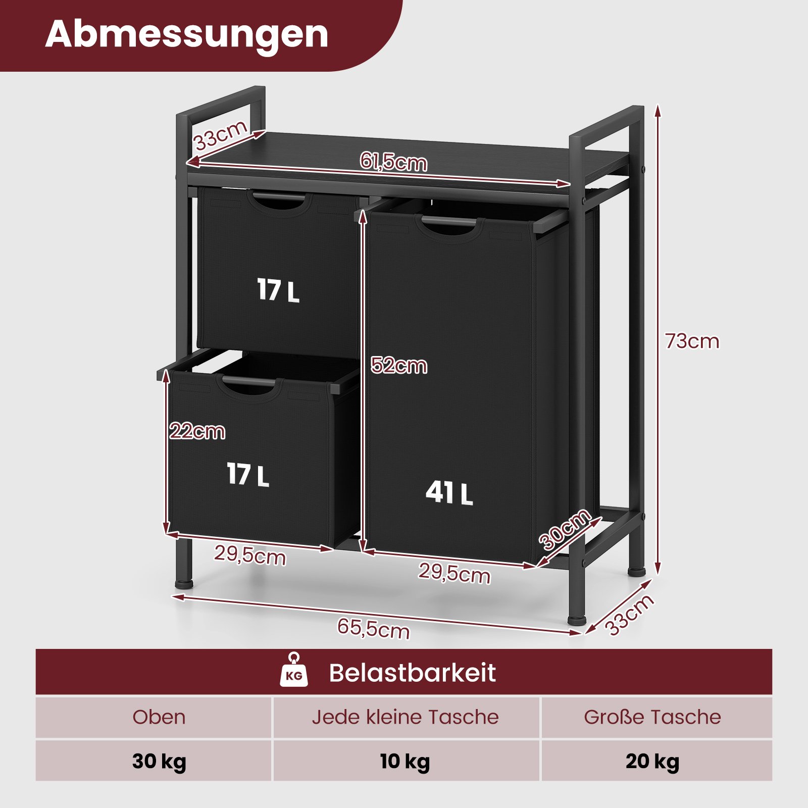 Skalbinių rūšiuoklis su 3 išimamais krepšiais ir lentyna (Juoda)