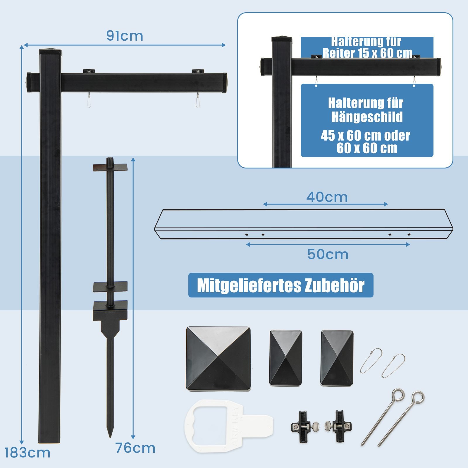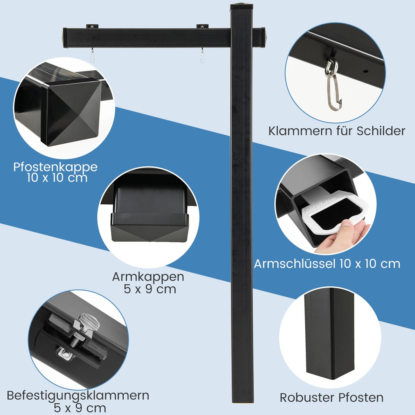 - Universali konstrukcija leidžia pritvirtinti įvairaus dydžio skelbimus ir informacinius ženklus.