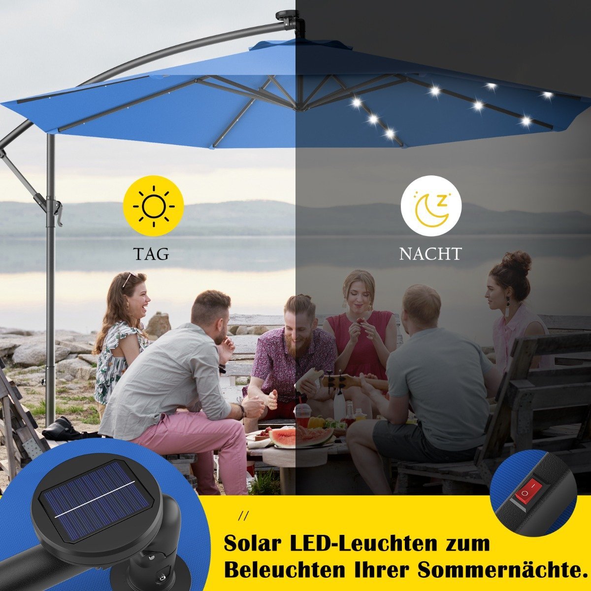Skėtis nuo saulės su LED apšvietimu ir pakreipiama funkcija (Mėlyna)