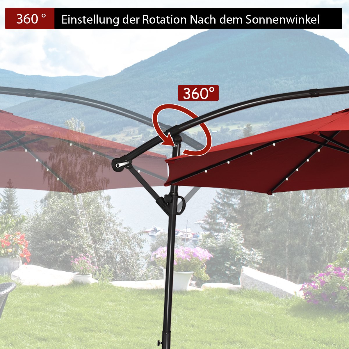 Skėtis su LED apšvietimu ir 360° pasukimu Ø 300 cm (Raudona)
