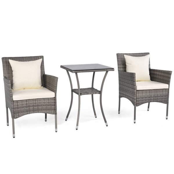 3 dalių lauko baldų komplektas su dviem pintais krėslais ir stalu su stikliniu stalviršiu (Pilka)