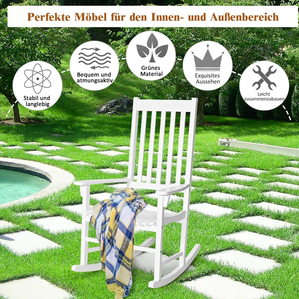 - Pagamintas iš aukštos kokybės, oro sąlygoms atsparios akacijos medienos.