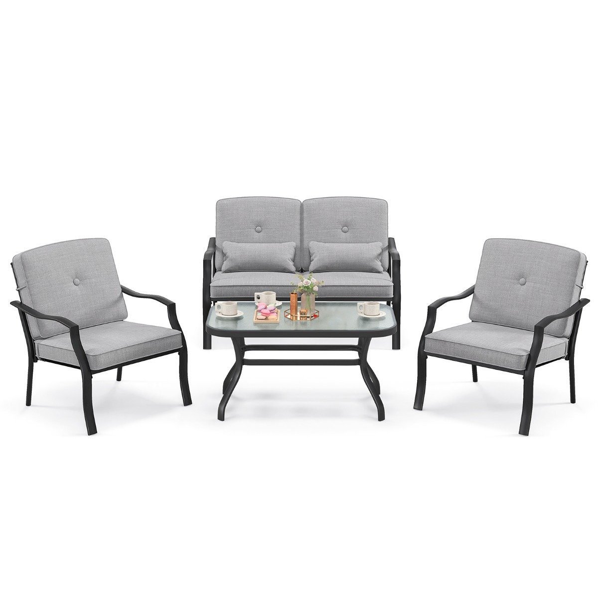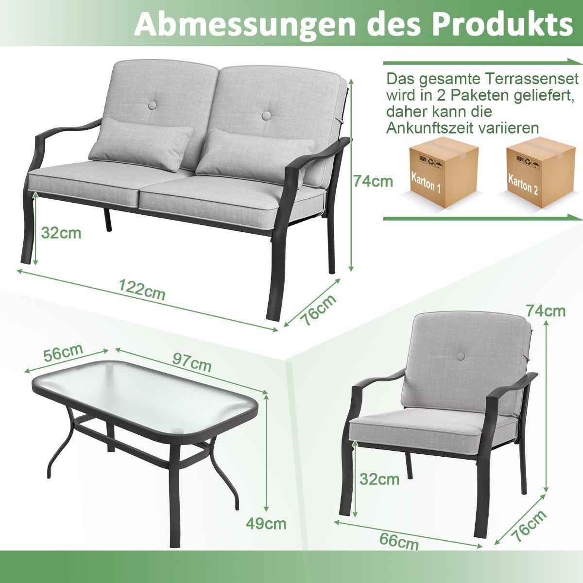 Sodo baldų komplektas iš 4 dalių su pagalvėmis (Pilka)