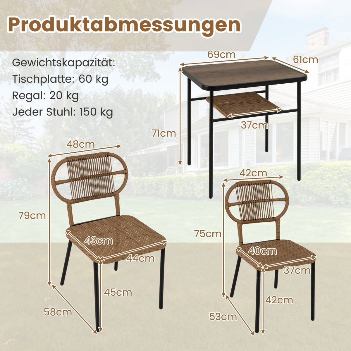 Atnaujinkite savo lauko erdvių patirtį su šiuo stilingu ir vietą taupančiu lauko baldų komplektu, sudarytu iš dviejų kėdžių ir valgomojo stalo. Šis komplektas puikiai tiks tiek jūsų balkonui, tiek terasai, suteikdamas jaukumo ir funkcionalumo.