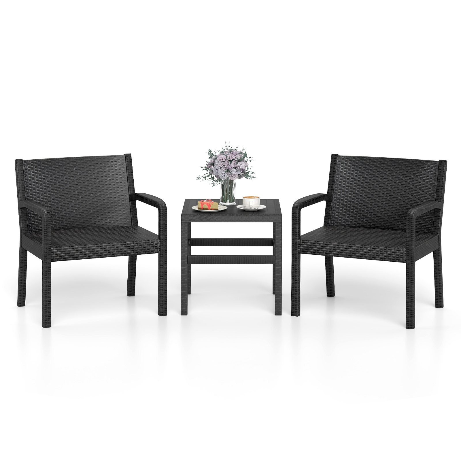 Sodo baldų komplektas su stalu ir dviem kėdėmis (Juoda)