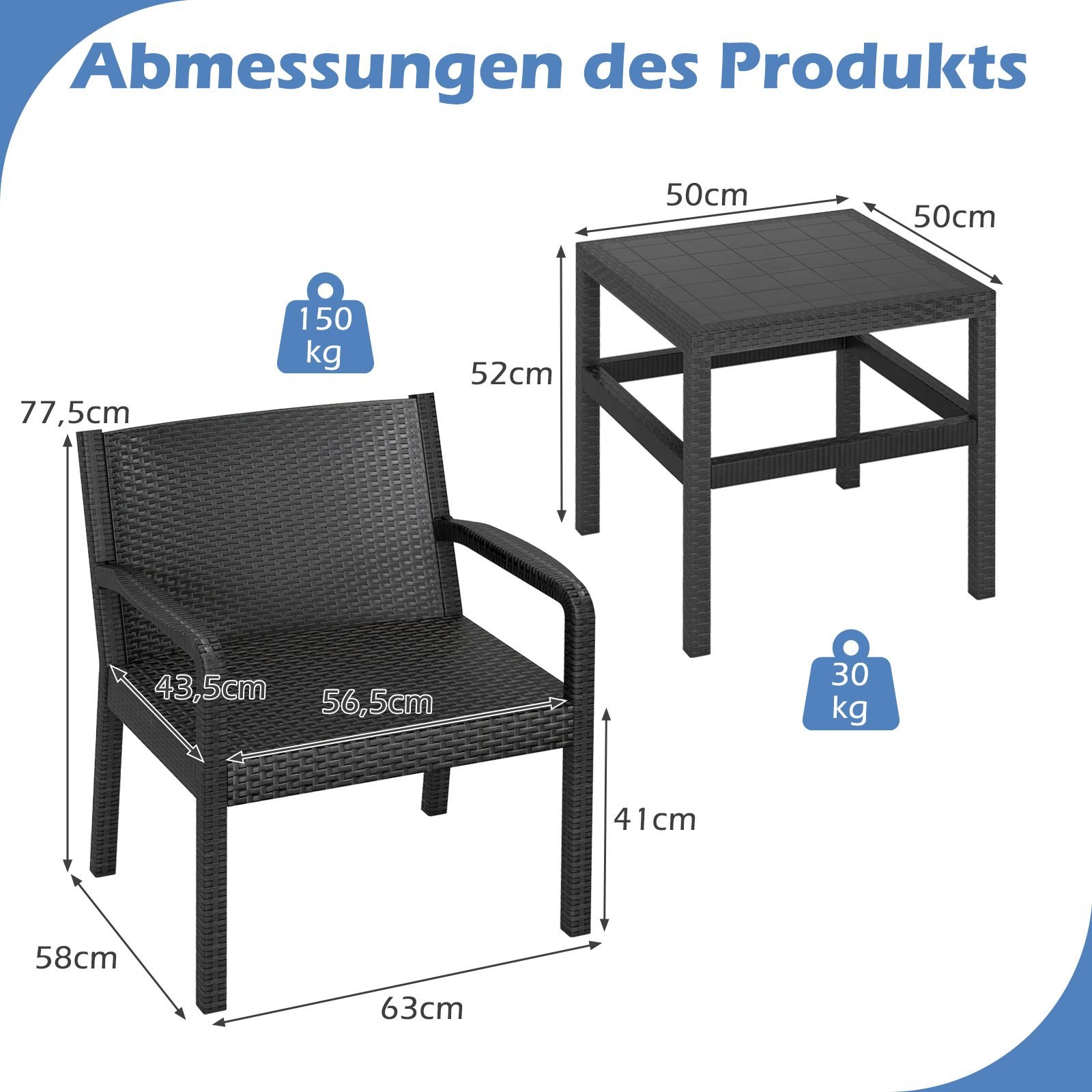 - Bendri matmenys (stalams): 50 x 50 x 52,5 cm (Ilgis x Plotis x Aukštis)