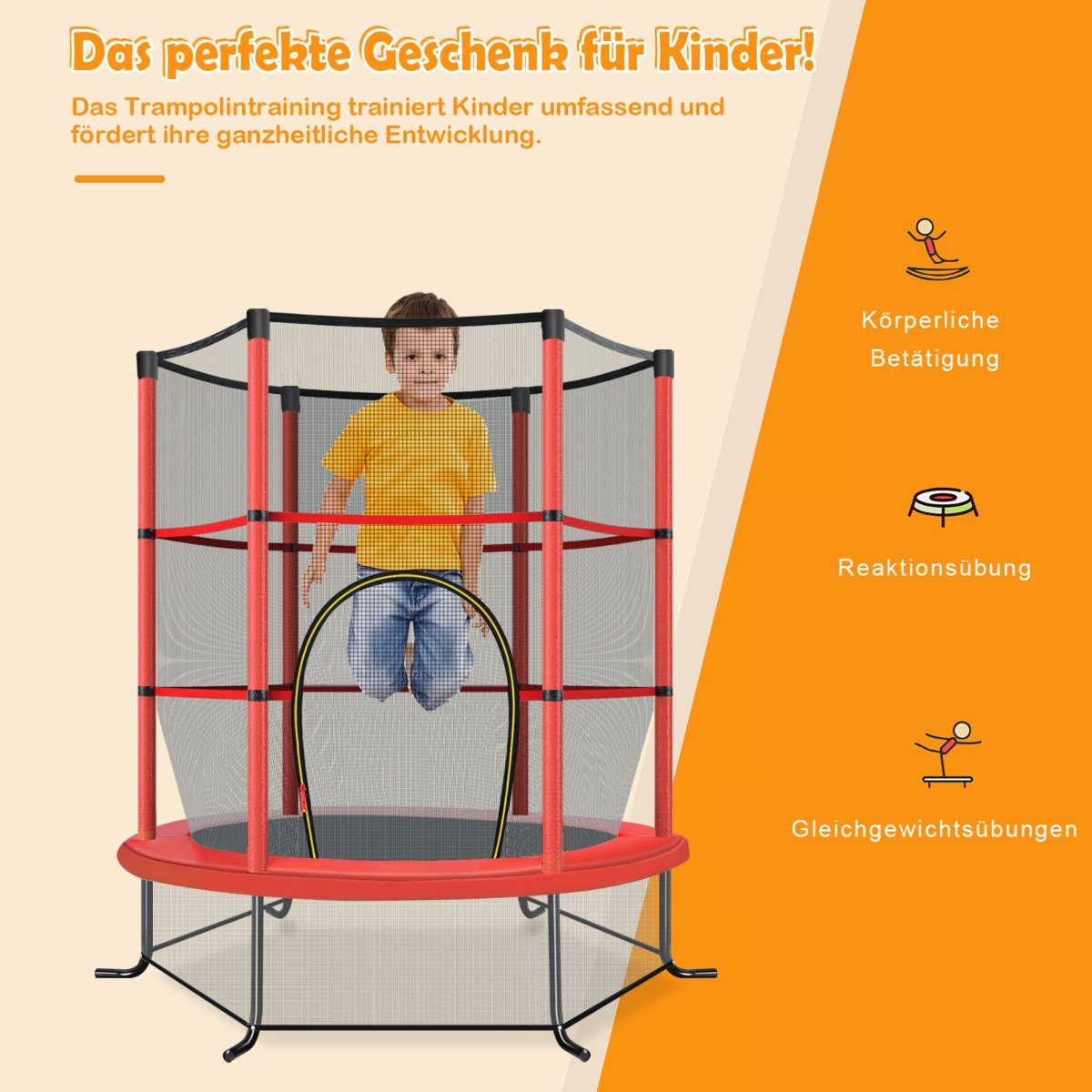 Padovanokite vaikams daug džiaugsmo ir skirkite laiko fizinei veiklai su šiuo saugiu ir patvariu sodo batutu! Sukurtas atsižvelgiant į saugumą ir pramogas, jis puikiai tiks tiek lauke, tiek viduje.