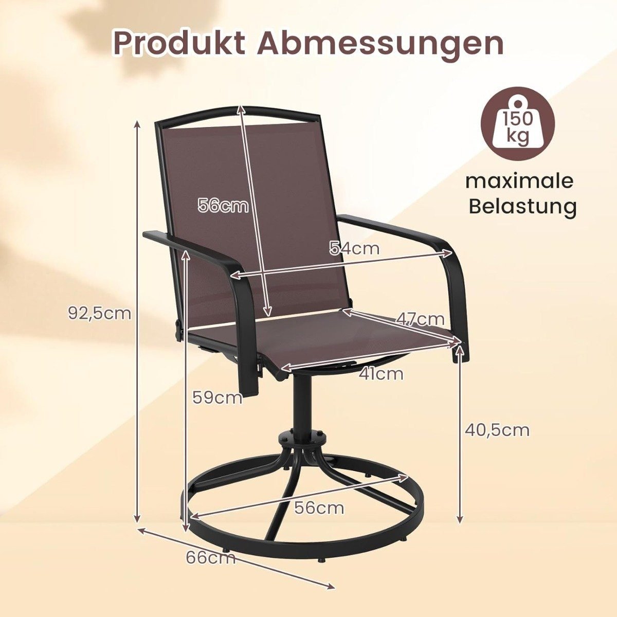 Atnaujinkite savo lauko erdvę su šiais aukštos kokybės, besisukančiais sodo krėslais. Tobulai suderinta švelni siūbavimo ir 360° sukimosi funkcija paverčia juos idealiu poilsio kampeliu. Tvirtas metalinis rėmas ir greitai džiūstantis audinys užtikrina ilgaamžiškumą, stabilumą ir ypatingą sėdėjimo komfortą.