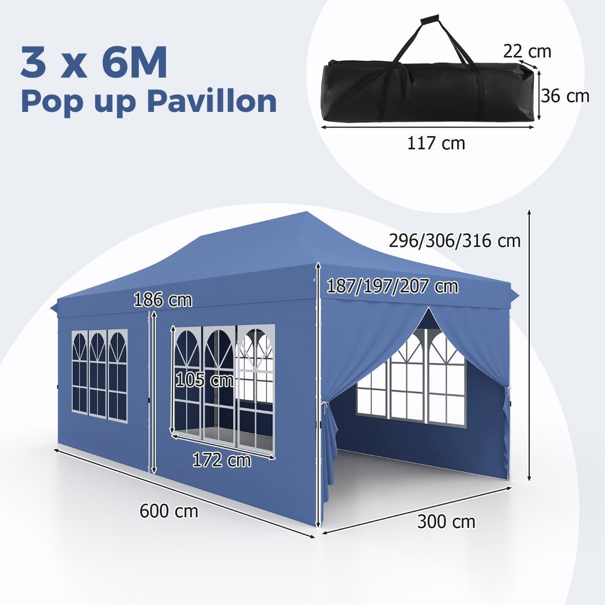 Suteikite savo renginiams stogą ir apsaugą su mūsų patvariu, 3×6 metrų sulankstomu pavėsiniu. Tai puikus sprendimas įvairioms lauko šventėms, vakarėliams ar prekybiniams renginiams, užtikrinantis komfortą Jums ir Jūsų svečiams.