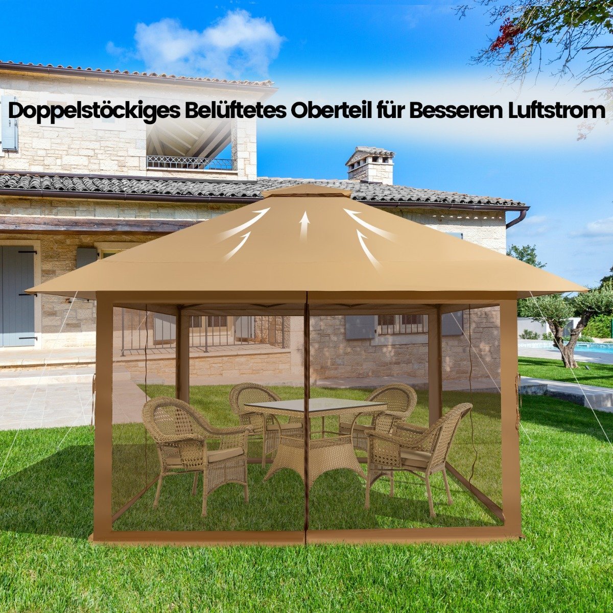 Sodo paviljonas 4x4m su tinkleliu ir UV apsauga (Chaki)