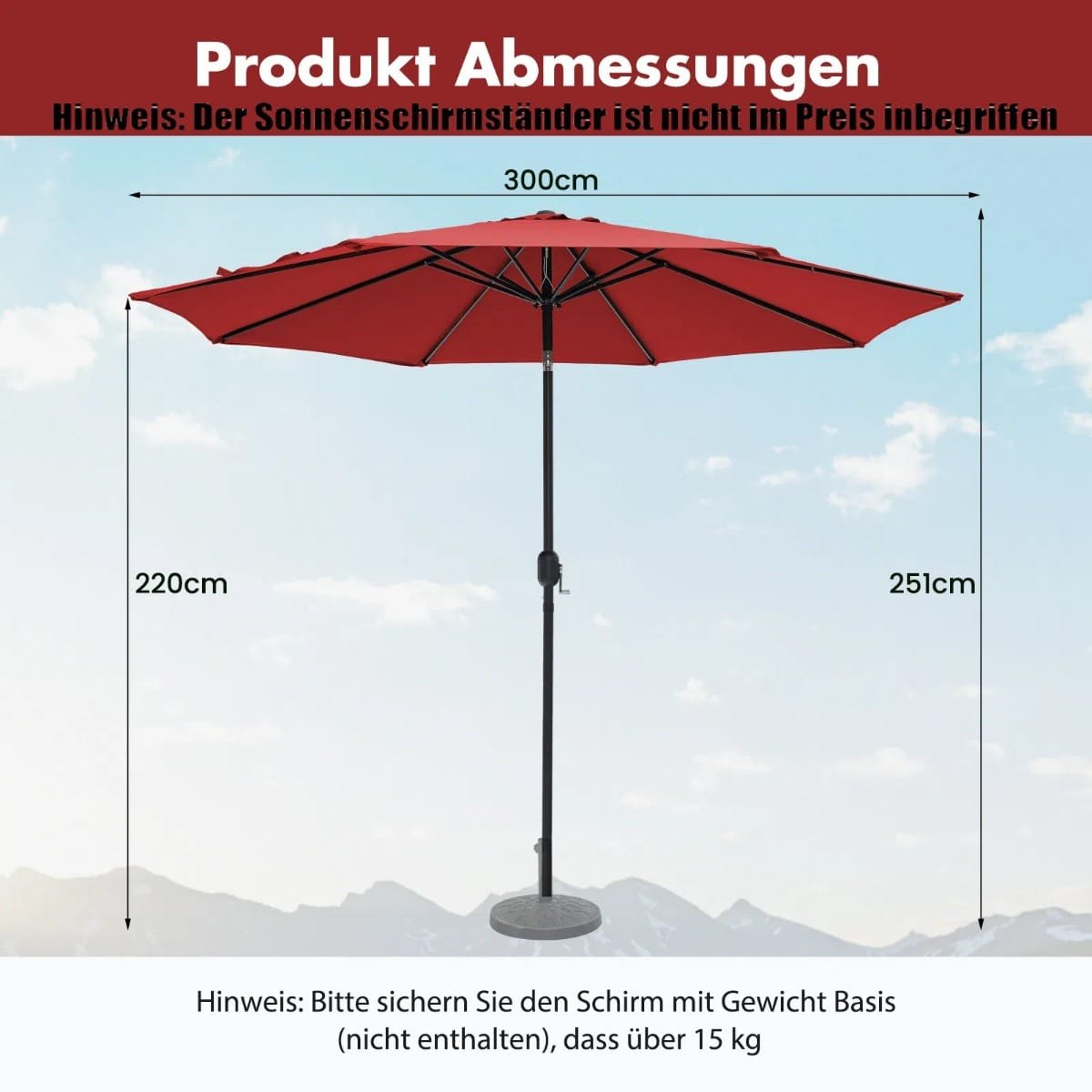 - Platus 3 metrų skersmuo užtikrina puikią apsaugą nuo saulės.