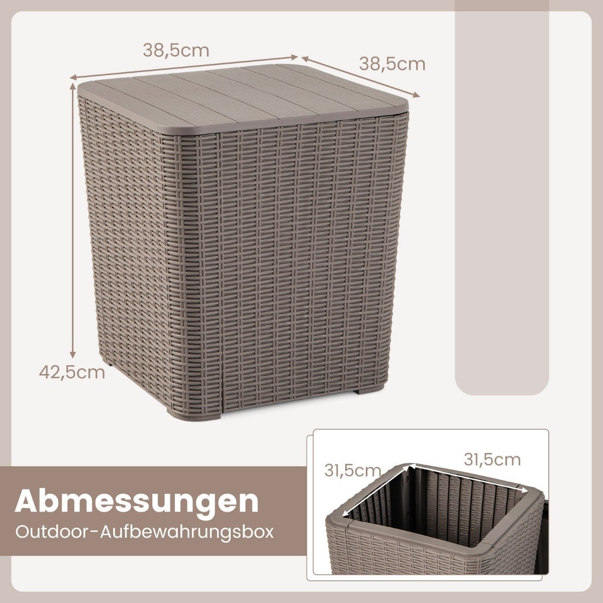 - Bendri matmenys (I x P x A): 38,5 x 38,5 x 42,5 cm