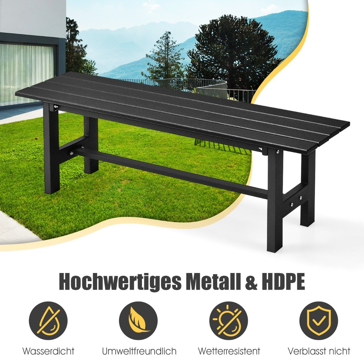 - Pagamintas iš patvaraus HDPE ir metalo, atsparus oro sąlygoms bei vandeniui.