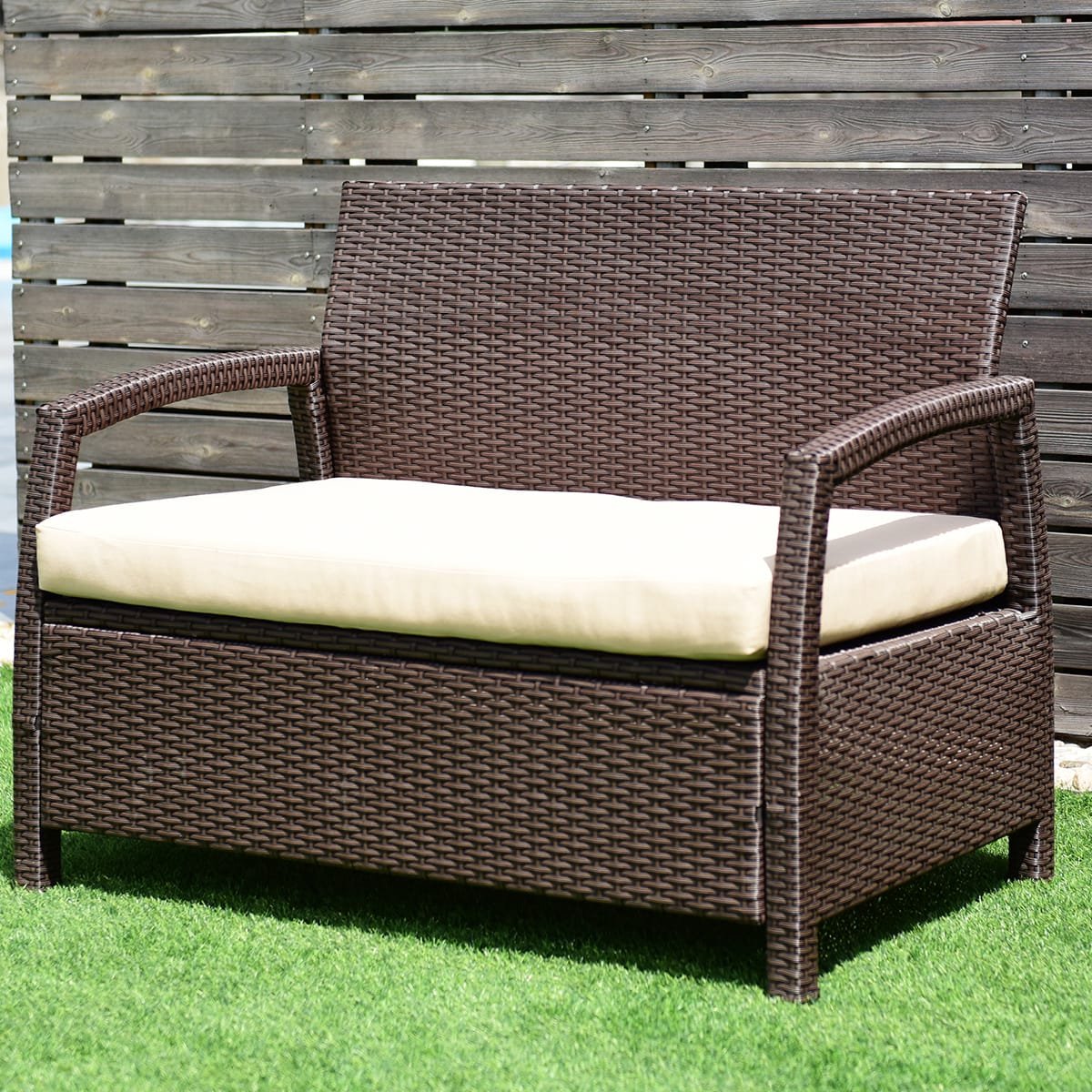 Šis lauko suolas – puikus pasirinkimas jūsų sodui, terasai ar balkonui. Jo tvirtas plieno rėmas ir atsparus dilimui rotango paviršius užtikrina ilgaamžiškumą, o minkšta pagalvėlė suteiks papildomo komforto. Idealiai tinka norintiems atsipalaiduoti lauke.