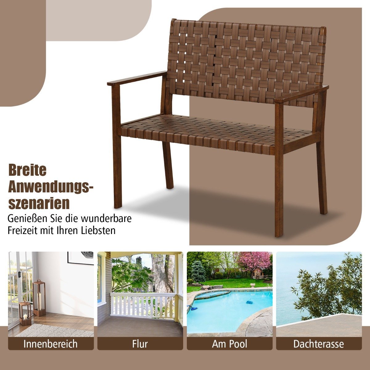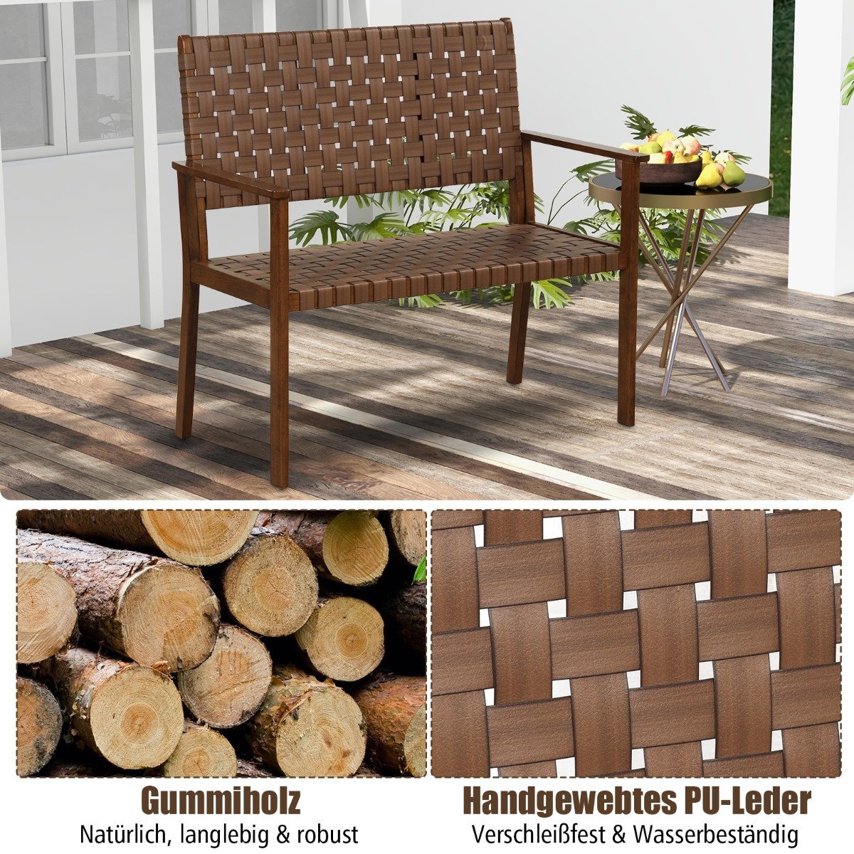 Mėgaukitės jaukia laisvalaikio akimirka su savo artimuoju mūsų dviviečiame terasos suole! Apsuptas rankomis pintos dirbtinės odos, platus atlošas ir sėdynė užtikrins jūsų patogumą. Lygūs atlošai suteiks papildomos atramos ir komforto.