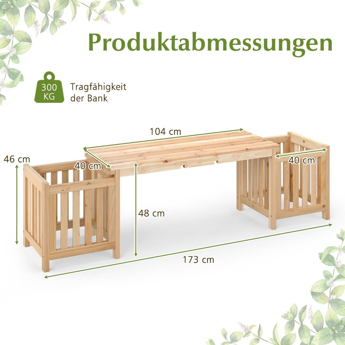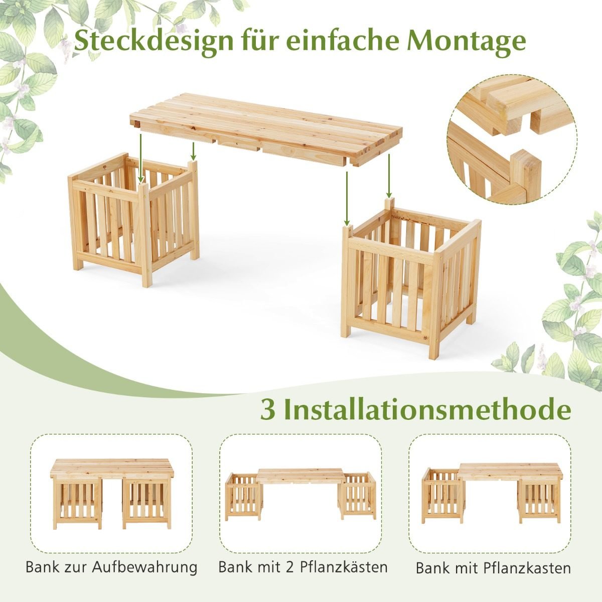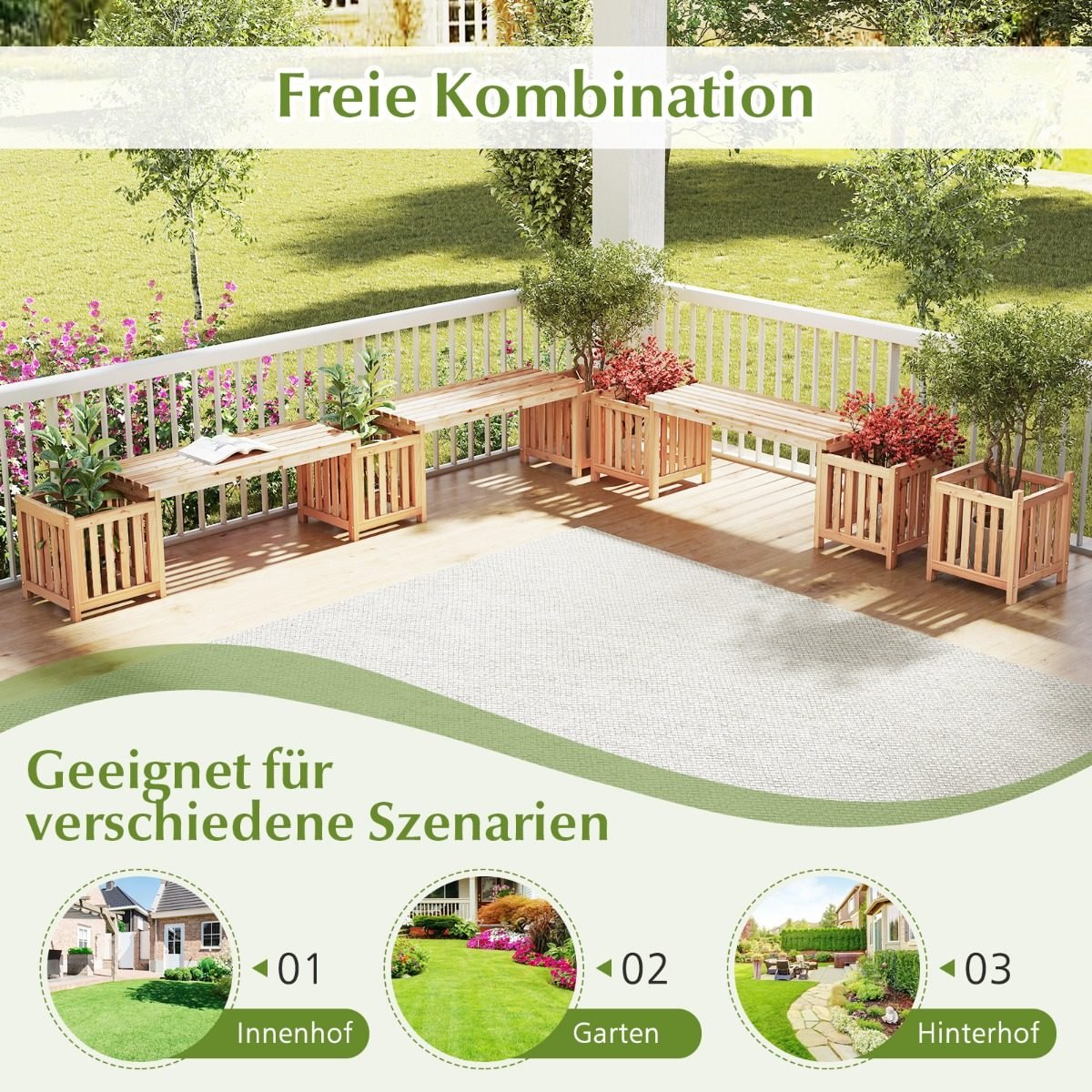 - 2-in-1 dizainas: sujungia suolą ir du vazonus, skirtus sėdėjimui ir augalų auginimui.