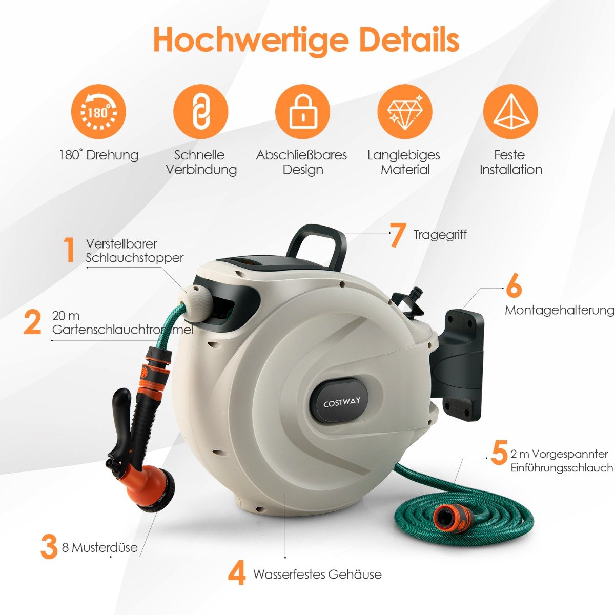 - Automatinis žarnos susukimas su fiksavimo funkcija.