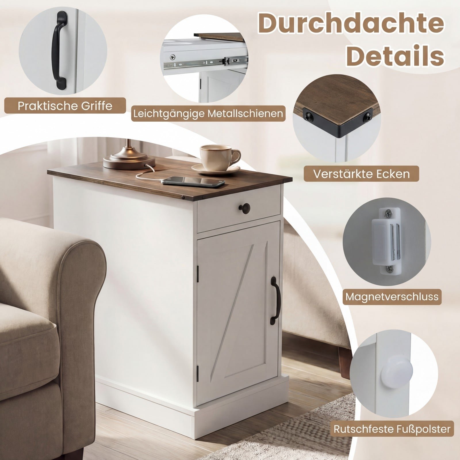 Šoninis staliukas su įkrovimo stotele ir paslėpta daiktadėže 2 vnt. (Balta)