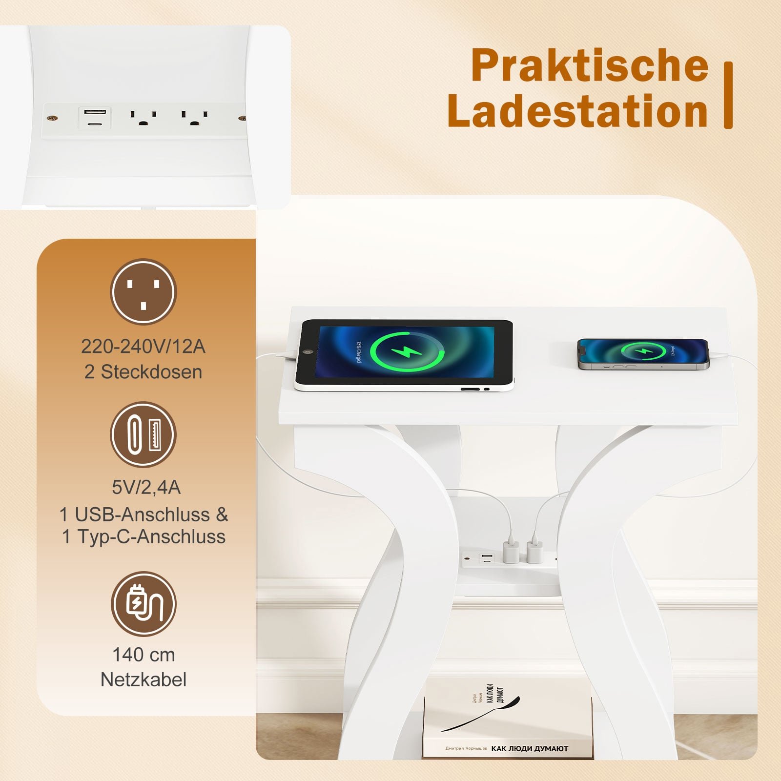 Šoninių staliukų komplektas su įkrovimo stotele 2 vnt. (Balta)