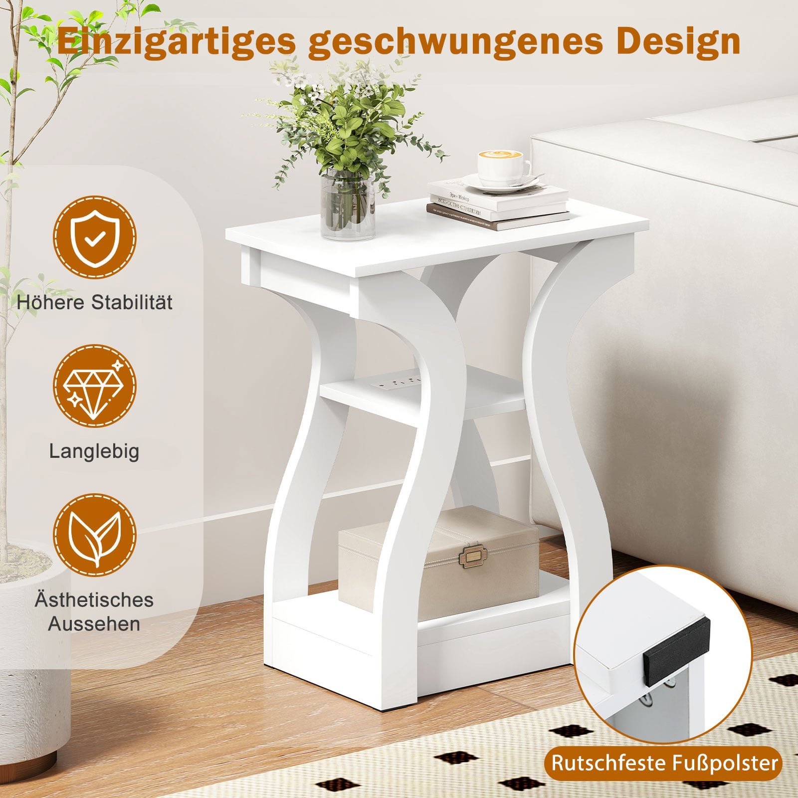 Pagerinkite savo namų erdvę su šiuo moderniu dviejų šoninių staliukų komplektu. Integruota įkrovimo stotelė leidžia vienu metu patogiai įkrauti kelis įrenginius. Trijų pakopų dizainas suteikia daug vietos dekoracijoms ir būtiniausiems daiktams susidėti. Jo išskirtinis lenktas dizainas suteikia šiuolaikinės elegancijos bet kuriai erdvei ir lengvai dera prie įvairių interjero stilių.