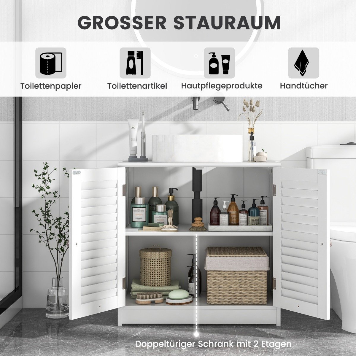 Spintelė po praustuvu su dviem durelėmis ir reguliuojama lentyna (Balta)