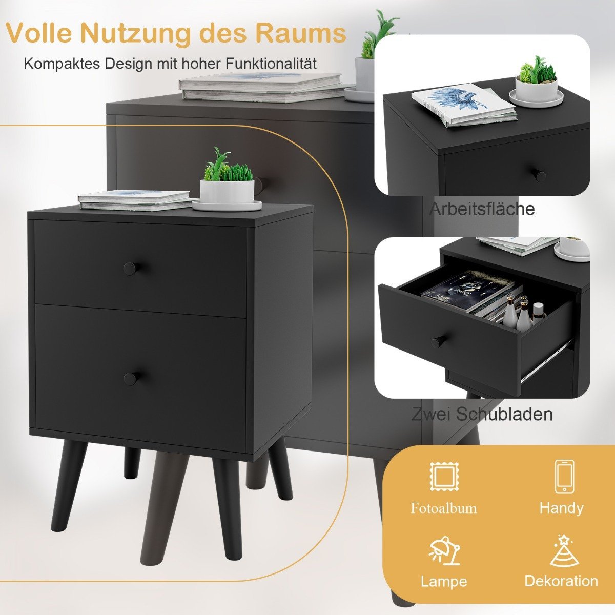 • 1 x Naktinė spintelė su 2 stalčiais