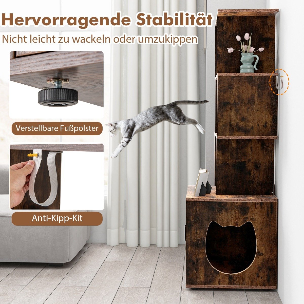Dviaukštė kačių tualeto spintelė su kopėčiomis (Ruda)