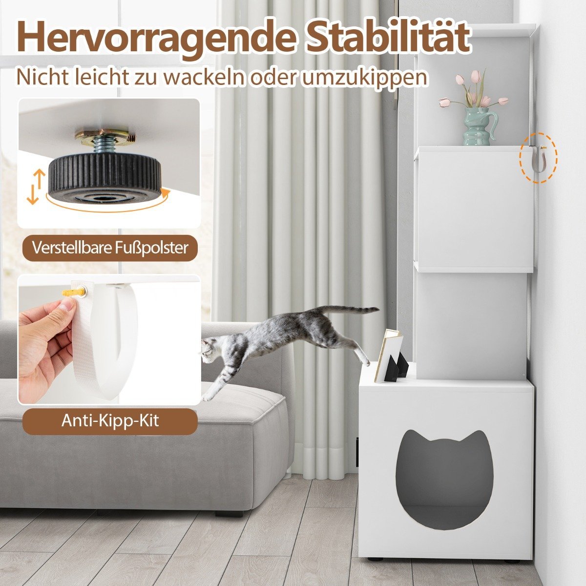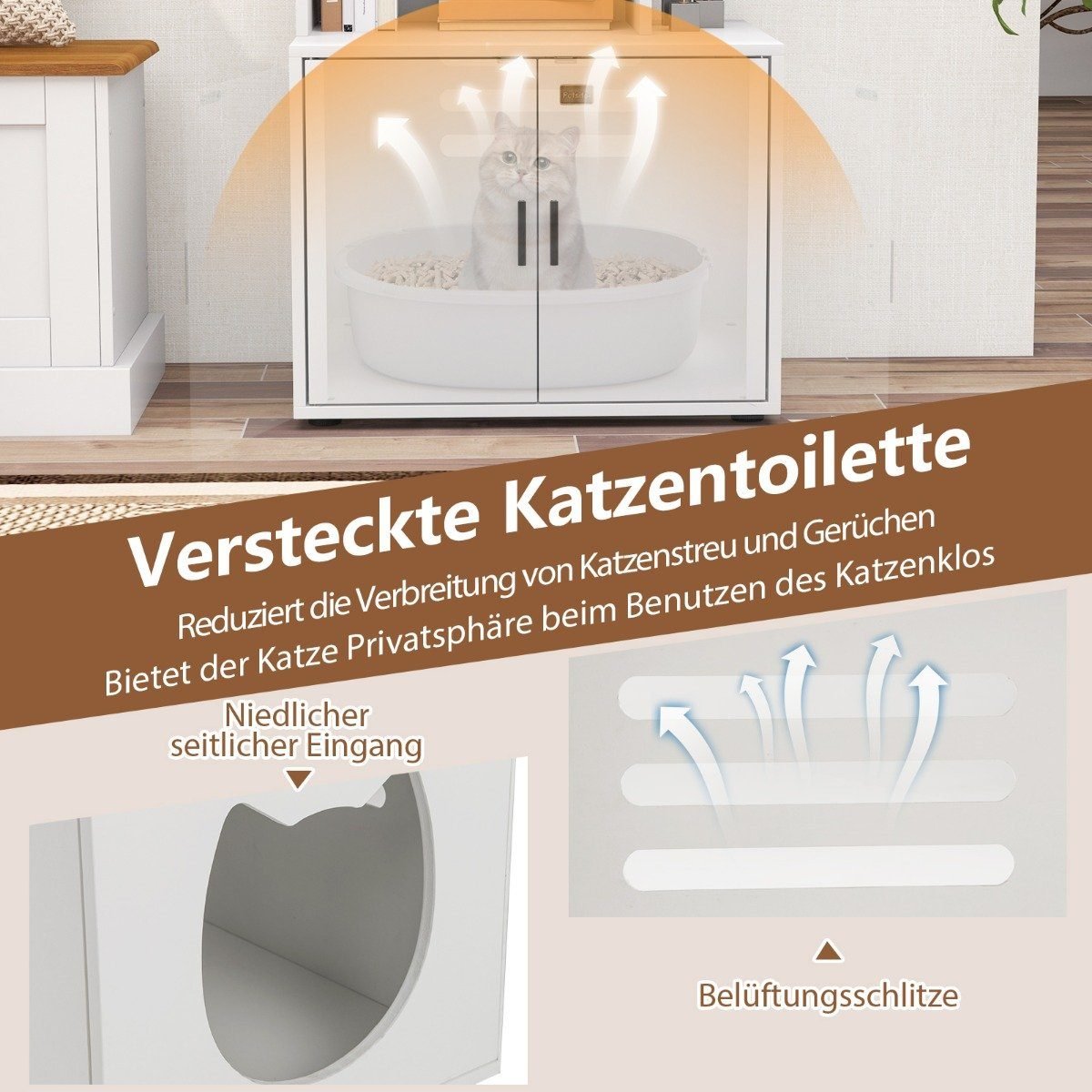 Sukurkite savo katei privačią ir tvarkingą erdvę su mūsų funkcionalia spintele, skirta kačių tualetui. Ši spintelė ne tik paslepia tualeto dėžę, bet ir suteikia papildomos vietos smulkiems daiktams laikyti, kartu prisidėdama prie estetiško Jūsų namų interjero.